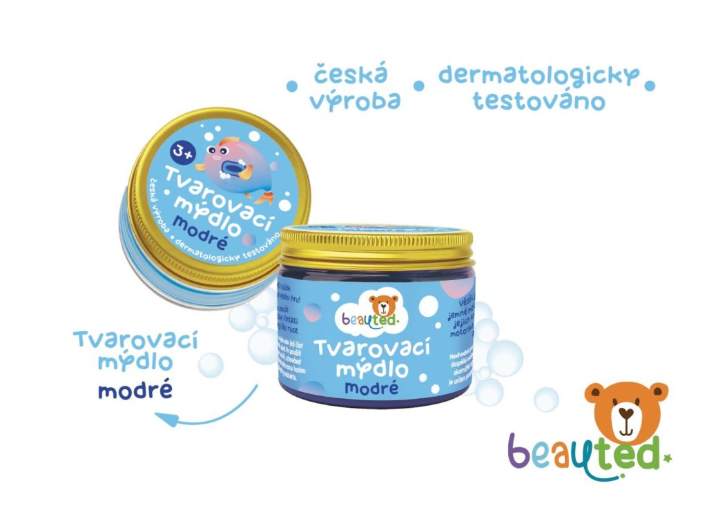 Zábava do koupele i při mytí rukou. Tvarovací mýdlo beauted má měkkou plastickou konzistenci, takže si s ním děti mohou hrát, tvarovat jej a zároveň se při hře umývat. Jemné k dětské pokožce – dermatologicky testováno. Praktická uzavíratelná dóza, která udržuje mýdlo čerstvé a hebké. Český výrobek