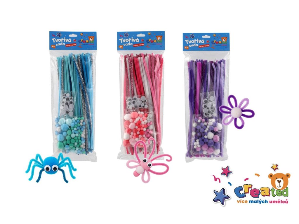 Zábavné i naučné tvoření pro děti. Podpořte dětskou fantazii a jemnou motoriku s barevnou tvořivou sadou. Sada obsahuje vše potřebné pro výrobu zvířátek, květin, postaviček či ozdob – ideální pro školky, výtvarné dílny i domácí tvoření. Vyberte si z různých barevných variant (modrá, růžová, fialová).