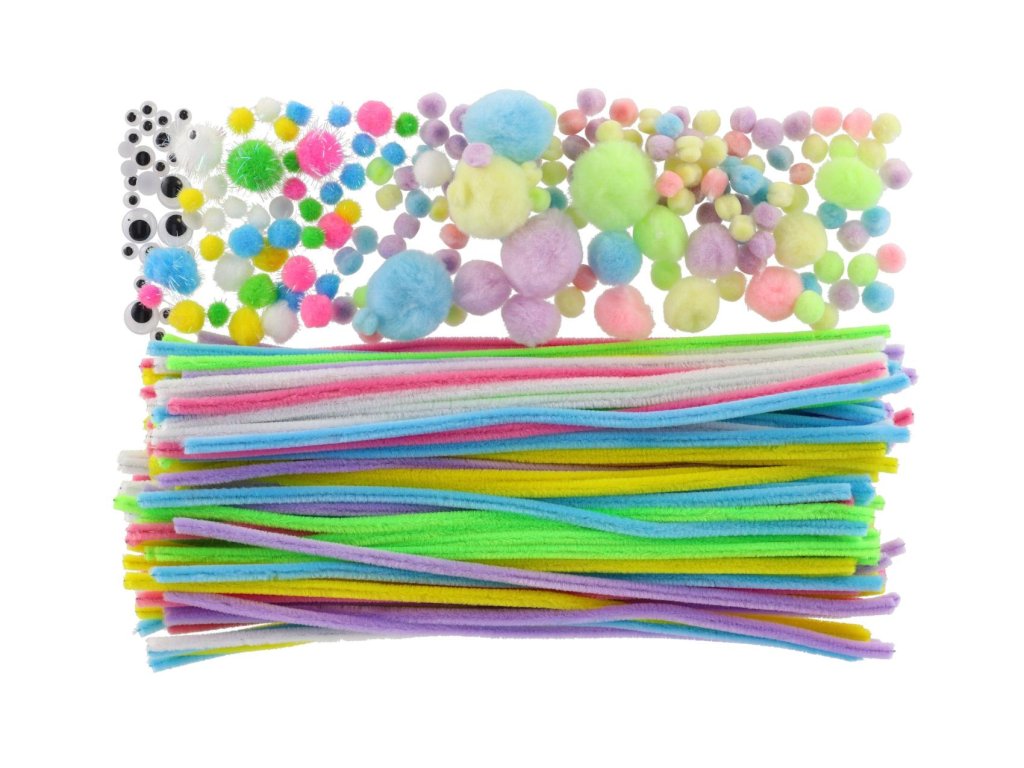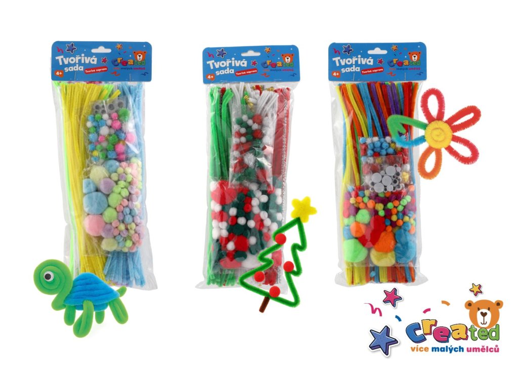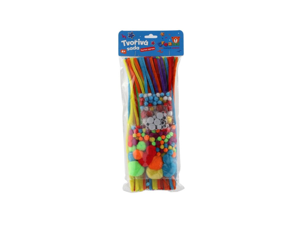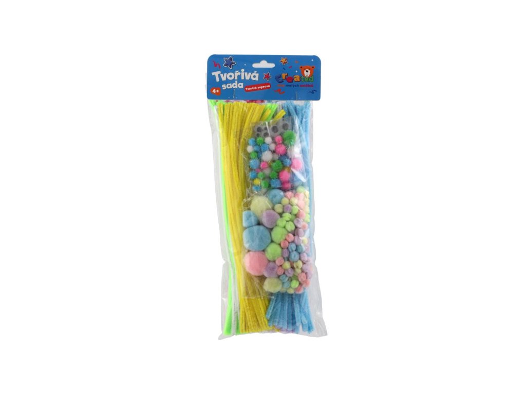 Obsahuje pestrou směs výtvarných komponentů, se kterými si děti snadno vytvoří zvířátka, květiny, postavičky nebo dekorace.