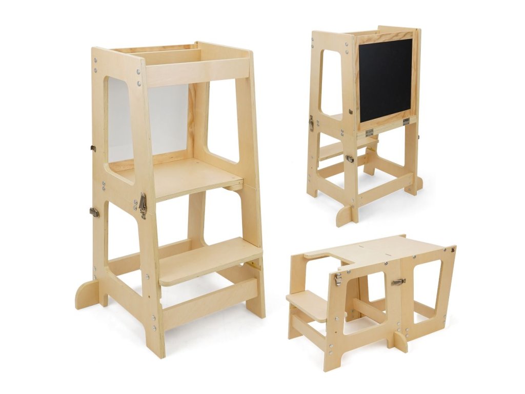3. Dítě může vylézt na výukovou věž samostatně, schod od podlahy je ve výšce 20 cm, což pomáhá dítěti dostat se na věž