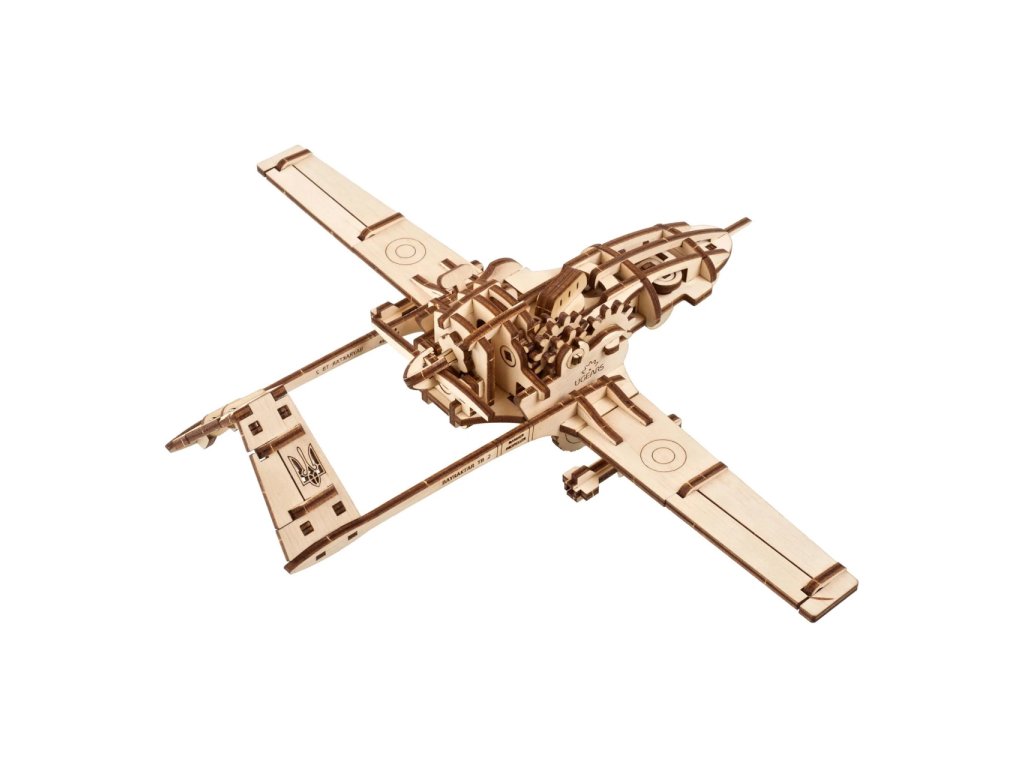 Ugears 3D dřevěné mechanické puzzle Bojový dron Bayraktar TB2