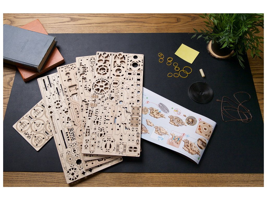 Bojové vozidlo Dozor-B, vyrobené na Ukrajině a poprvé uvedené do provozu v roce 2007, je víceúčelové lehké obrněné vozidlo pro přepravu personálu, zbraní, zdravotnického materiálu a vojenského vybavení v bojovém prostředí. Má řidičský oddíl, bojový oddíl (APC je obvykle vybaven dálkově ovládaným protiletadlovým kulometem, který se může otáčet o 360°) a oddíl vojska s porty pro pozorování a palbu z ručních zbraní. Pancéřovaný trup a ventilační, topné a klimatizační systémy v oddíle vojska poskytují vojákům ochranu před minami, palbou z ručních zbraní, drsným počasím a dokonce i NBC podmínkami (zaměstnání jaderných, Ugears Dozor-B Combat Vehicle model je také vyroben na Ukrajině. Disponuje „pancířem“ v podobě překližky o tloušťce 3,7 mm, pohonem všech kol, celoodpružením a pružinovým motorem, který mu umožňuje ujet značnou vzdálenost (asi 8 metrů). Protože toto je Ugears, a protože milujeme potěšit a ohromovat naše fanoušky skvělými doplňky, je bojové vozidlo Ugears Dozor-B vybaveno funkčním navijákem, stejně jako jeho analog ve skutečném světě, pro samovyprošťování nebo vyprošťování vozidel podobné hmotnosti. Vytáhněte naviják namontovaný na předním nárazníku, zavěste ho na předmět a sledujte, jak táhne Dozor-B dopředu! Mezi další mechanické prvky bojového vozidla Dozor-B patří otevírací dveře na straně řidiče a spolujezdce a horní poklop a zadní poklop, které se otevírají a odhalují podrobný oddíl pro vojáky, doplněný lavicovými sedadly a bezpečnostními pásy s gumovými pásy! Mezi ozdobné prvky na vnější straně vozidla patří stojan na nářadí s páčidlem, krumpáčem, sekerou a lopatou, kanystry s náhradním plynem na zadním poklopu pro mise na dlouhé vzdálenosti a laserem ryté nýtování. Knoflík ráčny nahoře (kam by normálně šel kulomet) umožňuje natahovat pružinový motor APC. Chcete-li uvést model do pohybu, stačí spustit páku „Start/Stop“ na boku vozidla a sledovat, jak se všechna čtyři kola vypínají! Stavebnice modelu obrněného transportéru Dozor-B obsahuje 300 dílů, je hodnocena jako "Střední" (pro poněkud zkušené modeláře) a slibuje 8 hodin vzrušující doby stavby. Vše, co potřebujete k sestavení bojového vozidla Dozor-B, je součástí balení. Není potřeba žádné lepidlo ani speciální nástroje. Pro úspěšné sestavení se ujistěte, že pečlivě dodržujete ilustrované podrobné pokyny v 11 jazycích (angličtina, ukrajinština, němčina, španělština, francouzština, italština, portugalština, polština, japonština, čínština a korejština). Věnujte zvláštní pozornost instalaci dílů s jejich správnou orientací a pro optimální funkci lehce obrouste a namažte (přiloženým kusem vosku) všechny pohyblivé díly. Skvělou konstrukční vlastností bojového vozidla Dozor-B je možnost výměny gumových pásů v systému zavěšení a v mechanismu navijáku, v případě potřeby, bez demontáže celého modelu. Svůj Dozor-B můžete ponechat v jeho atraktivním stavu přírodního dřeva, natřít jej vojenskou fádností, přidat maskovací vzor nebo popustit uzdu svému vnitřnímu umělci s barevným schématem dle vašeho výběru. Hlavní vlastnosti: 300 precizně vyřezaných dílkůstřední obtížnost sestavenídrobné mechanické detailynavrženo a vyrobeno na Ukrajině