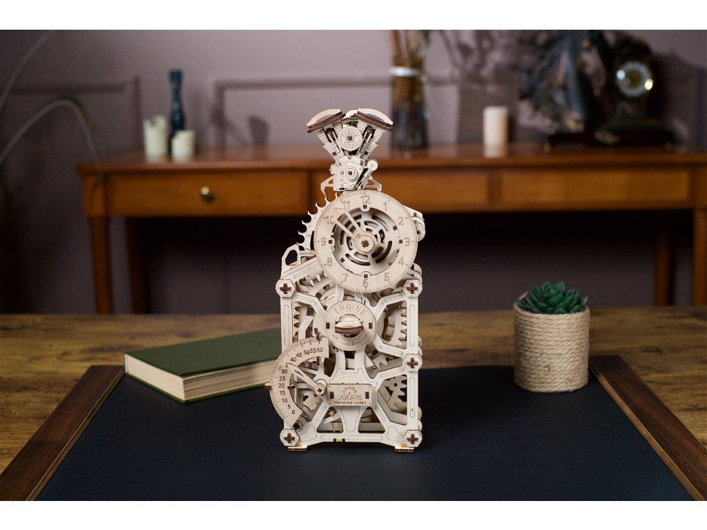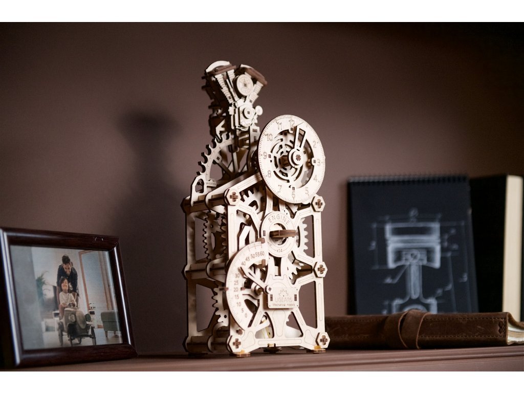 Ugears 3D dřevěné mechanické puzzle Hodiny motoru