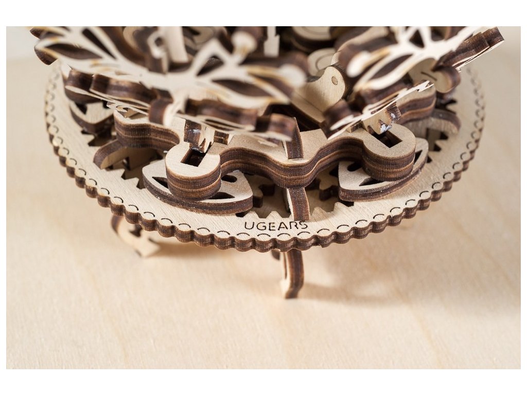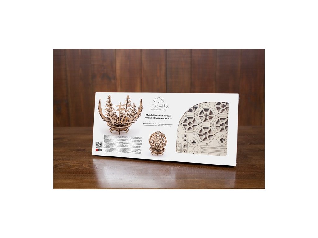 Přírodní 3D dřevěné mechanické puzzle UGEARS Květina. Mechanická květina zavírá a otevírá své okvětní lístky. Může sloužit třeba jako nevšední šperkovnice na Váš oblíbený šperk. 3D pohyblivý model pracuje bez nutnosti lepení a umožňuje pochopit základní principy mechaniky. Hlavní vlastnosti: 101 precizně vyřezaných dílkůkvalitní materiál a zpracovánívhodné od 14+ věkustřední obtížnost sestavení přibližně 1,5 - 2 hodinyrozvíjí jemnou motoriku, trpělivost a prostorovou představivostnávod k sestavení je součástí balenínavrženo a vyrobeno na Ukrajině