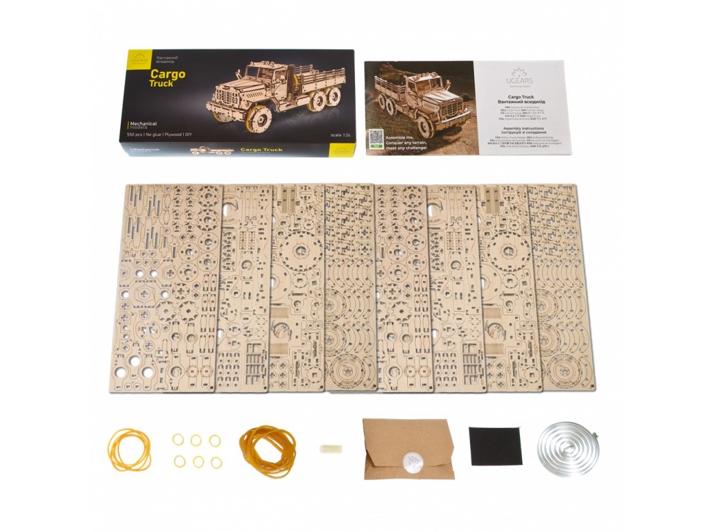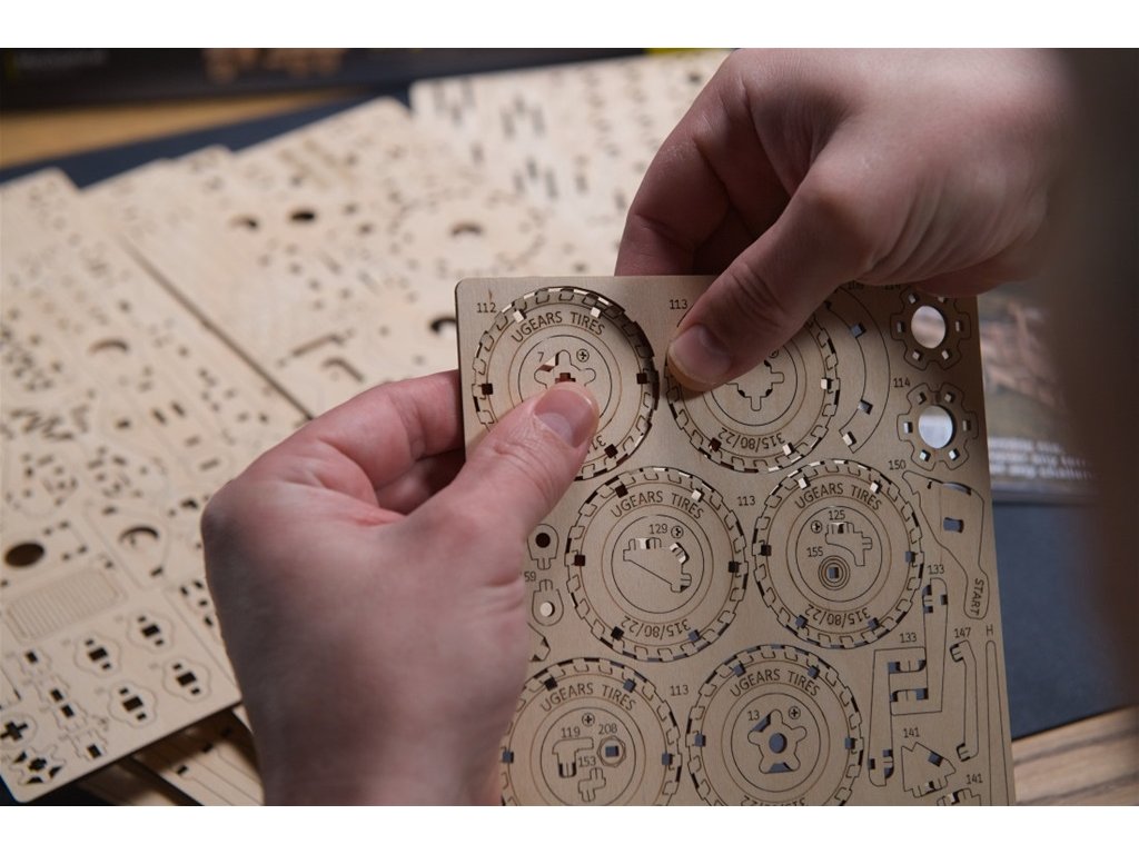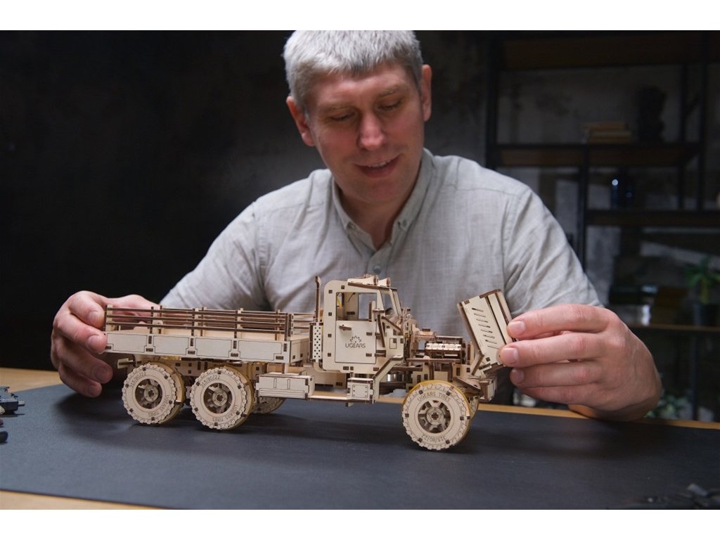 Tento model s pružinovým pohonem na úrovni "Advanced" je mistrovské dílo mechanického inženýrství, které Vám poskytne hodiny fascinující zábavy. Je vybaven plným odpružením všech náprav a dvěma diferenciály, které přenášejí sílu pružinového motoru na přední i zadní nápravu. Otevírací kapota odhaluje detailní motor, funkční kliky dveří, nastavitelná zpětná zrcátka a sklopné dveře zavazadlového prostoru – to vše a mnohem více dodává tomuto modelu neuvěřitelnou autentičnost. Na jedno natažení ujede 2-3 metry a díky třem polohám předních kol si sami volíte směr jízdy. Balení obsahuje 550 dílů a je určena pro zkušené modeláře. Nebojte se však výzvy! Vše, co potřebujete k sestavení, je součástí balení, včetně srozumitelných ilustrovaných pokynů krok za krokem v 11 jazycích. Hledáte originální dárek pro milovníka těžké techniky, modeláře, nebo pro kohokoli, kdo ocení krásu a funkčnost mechanických modelů? Nákladní vůz Ugears je tou pravou volbou! Model nákladního vozu Ugears je inspirován legendárními vojenskými vozidly, jako jsou Mack NO 7 1/2 tuny 6x6 a Diamond T 4 tuny 6x6, které sloužily v armádách Spojenců během druhé světové války. S tímto modelem si domů přinesete kus historie a technické dokonalosti. Hlavní vlastnosti: rozvíjí kreativitu, trpělivost a technické myšlenízábava pro celou rodinuimpozantní dekoracekvalitní materiály a zpracovánípočet dílků 550doba sestavení cca 8 hodinobtížnost těžká