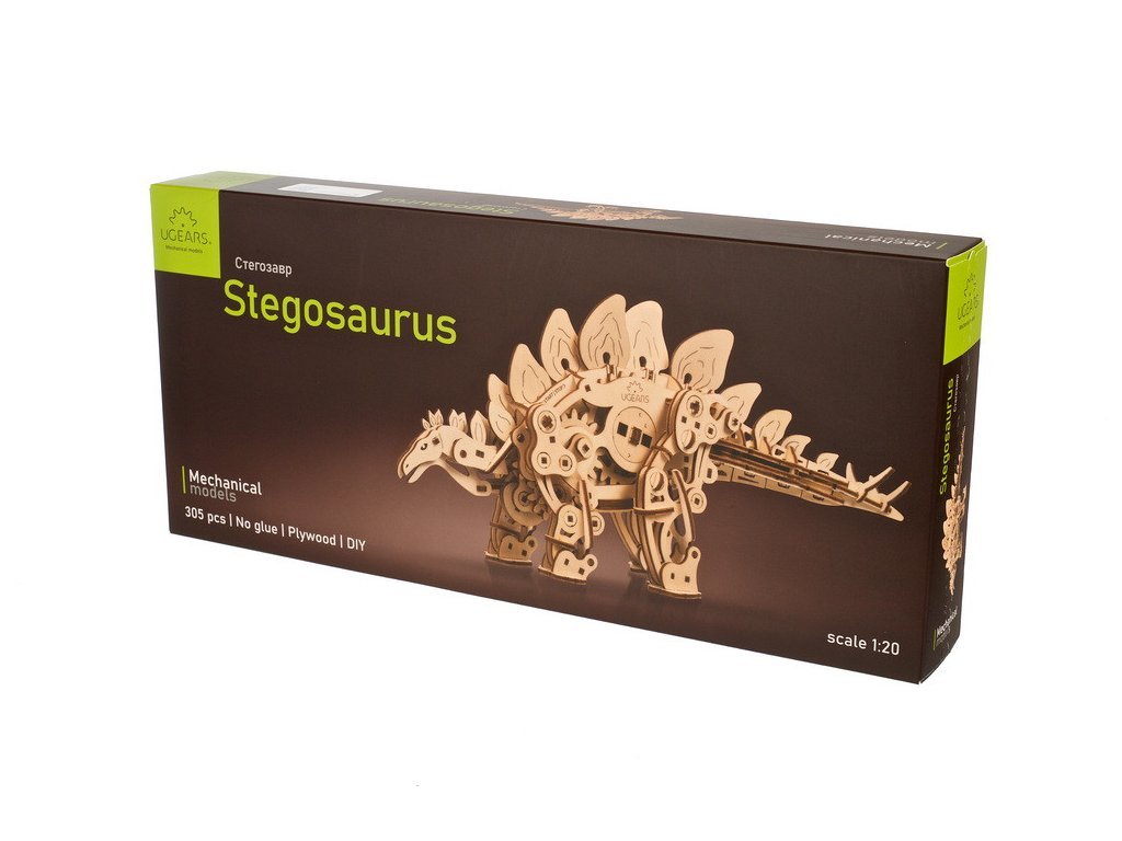 Stegosaurus. Popusťte uzdu svému vnitřnímu paleontologovi a přiveďte tohoto obra zpět k životu! Postavte si vlastního chodícího dinosaura a pak si společně užijte nápaditou hru. Stegosaurus má 305 dílů a slibuje 8+ hodin vzrušujícího času montáže. K sestavení mechanického modelu dinosaura nebudete potřebovat lepidlo ani speciální nástroje. Stačí skládat dřevěné kusy umělecké kvality podle podrobných pokynů v 11 jazycích (angličtina, němčina, ukrajinština, francouzština, polština, španělština, portugalština, japonština, italština, čínština a korejština). Ujistěte se, že brousíte a namažete všechny pohyblivé části přiloženým kusem brusného papíru a vosku, "vyvíjíte" ozubená kola, aby vaše mechanické puzzle běželo hladce. Hlavní vlastnosti: 305 precizně vyřezaných dílkůstřední obtížnost sestavenínavrženo a vyrobeno na Ukrajině Dokumentace: Obrázkový návod ke stažení zdevideo návod k montáži krok za krokem
