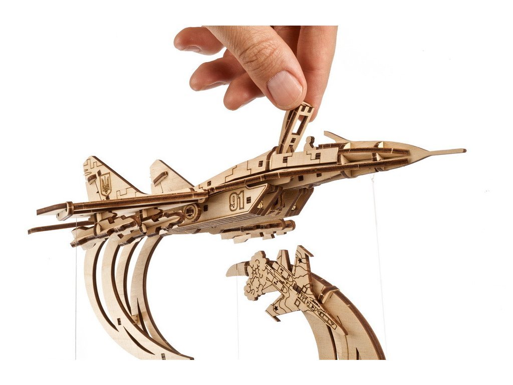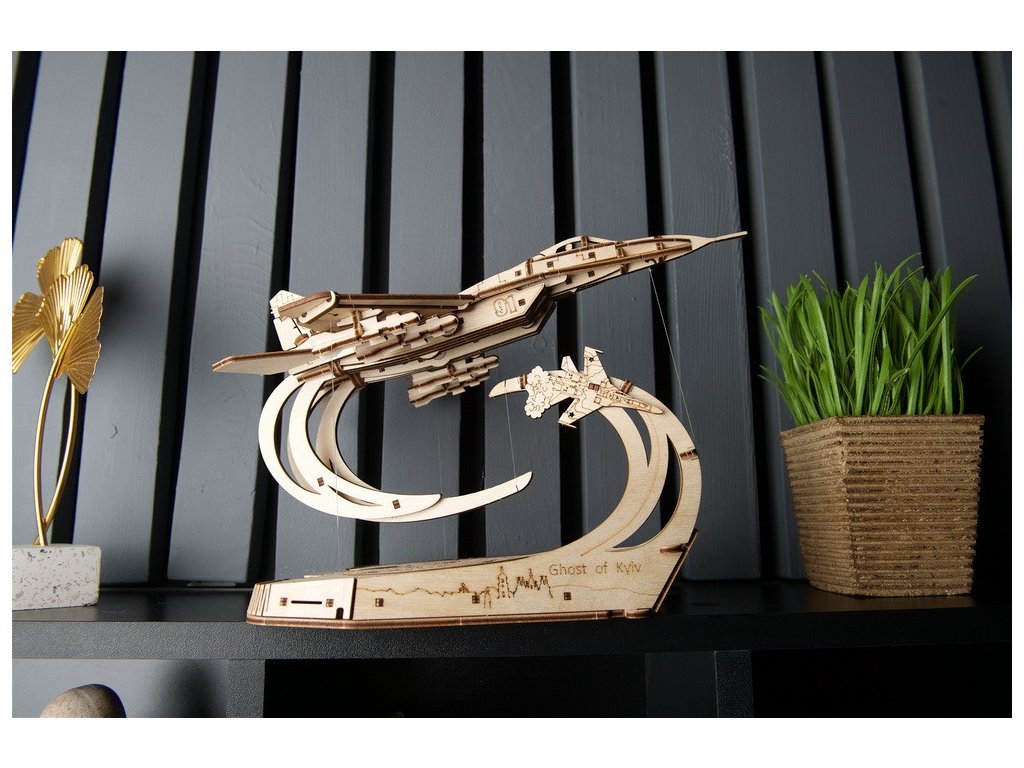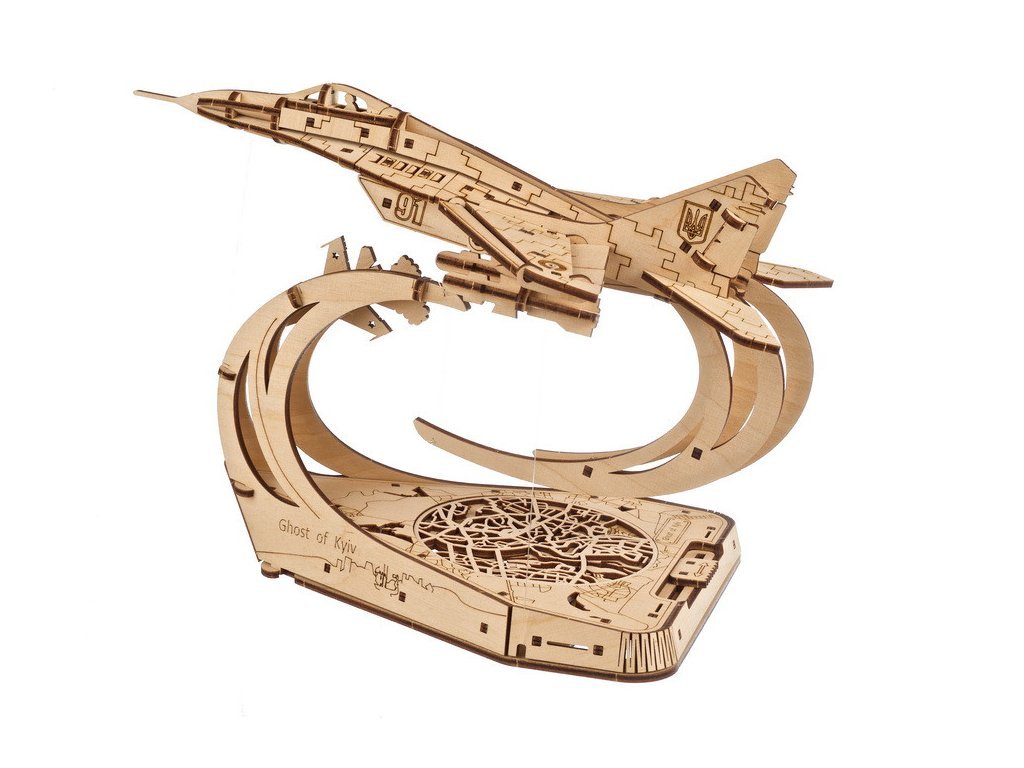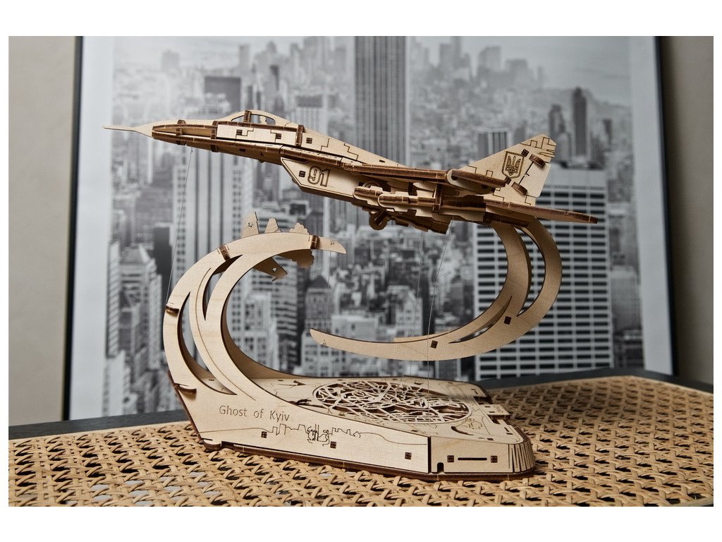 Představte si model, který nejen že zpodobňuje hrdinství, ale sám se stává symbolem odvahy a nezlomnosti. Ugears přináší na trh model stíhačky MiG-29, který v měřítku 1:72 přesně kopíruje legendární letoun "The Ghost of Kyiv". Tento model nejenže zdůrazňuje technickou dokonalost, ale i příběh neohroženého obránce nebe nad Kyjevem. Připomeňte si příběh, který otřásl světem, díky precizně vyřezávanému 3D puzzle. Každý díl tohoto modelu byl navržen s ohledem na detail a autenticitu. Pohyblivá křidélka, vztlakové klapky, zatahovací podvozek a dokonce i odnímatelné střely. Ale co opravdu vystihuje ducha tohoto modelu, je jeho schopnost „vznášet se“ nad stylizovanou mapou Kyjeva pomocí tensegrity, což je revoluční princip, který umožňuje modelu defiálně vznášet se ve vzduchu. Je to kus inženýrského umění, který přináší příběh The Ghost of Kyiv do vašeho domova nebo kanceláře. S 181 díly a předpokládanou dobou montáže cca 5 hodin, tento model nabízí nejen zábavu a vzdělání, ale stává se také kreativní výzvou pro jednotlivce i rodiny. Představte si, jak sestavujete každý dílek, odhalujete příběhy odvahy a vzpomínáte na nezlomnost ukrajinského ducha. Není potřeba žádné lepidlo ani nástroje, jen vaše šikovnost a touha tvořit. Tento model je nejen úžasným dárkem pro každého nadšence do leteckého modelářství a vojenské historie, ale také originálním exponátem, který přitáhne pozornost ve vašem domově nebo kanceláři. Nechte se inspirovat příběhem, který bude žít s vámi a vaší rodinou po generace. Hlavní vlastnosti: 181 precizně vyřezaných dílkůstřední obtížnost sestavenídrobné mechanické detailynavrženo a vyrobeno na Ukrajině