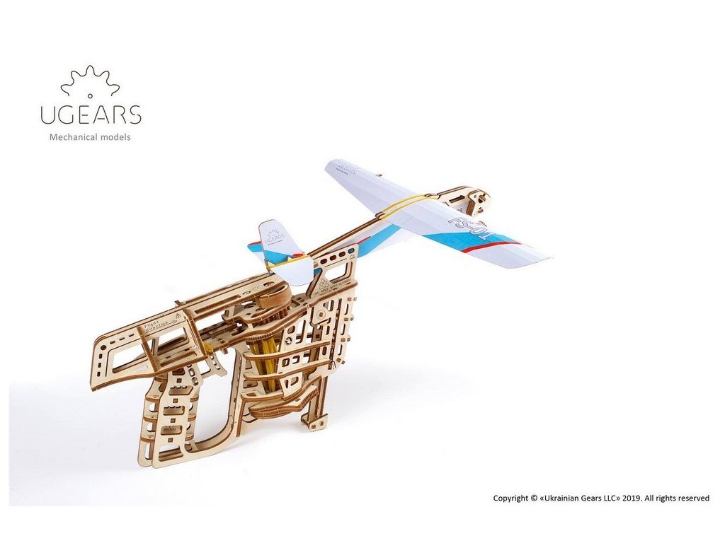 Ugears 3D dřevěné mechanické puzzle Vystřelovací letadlo