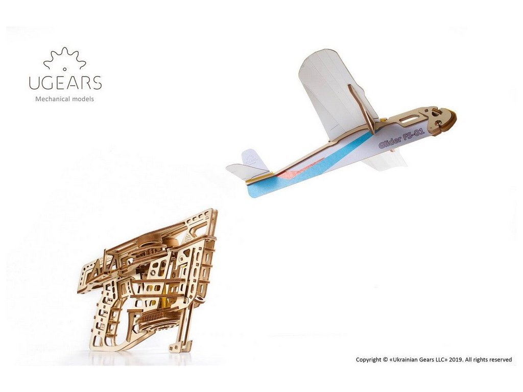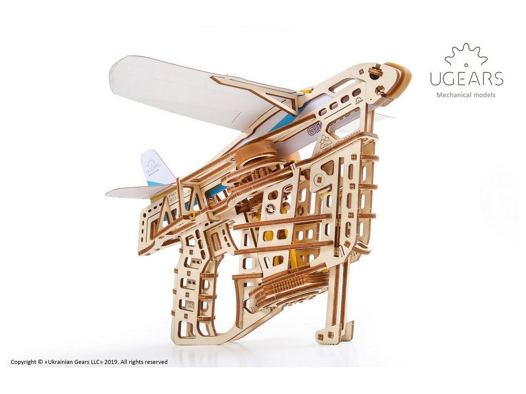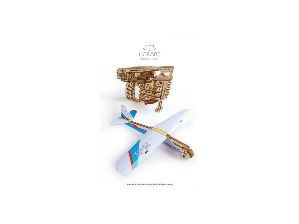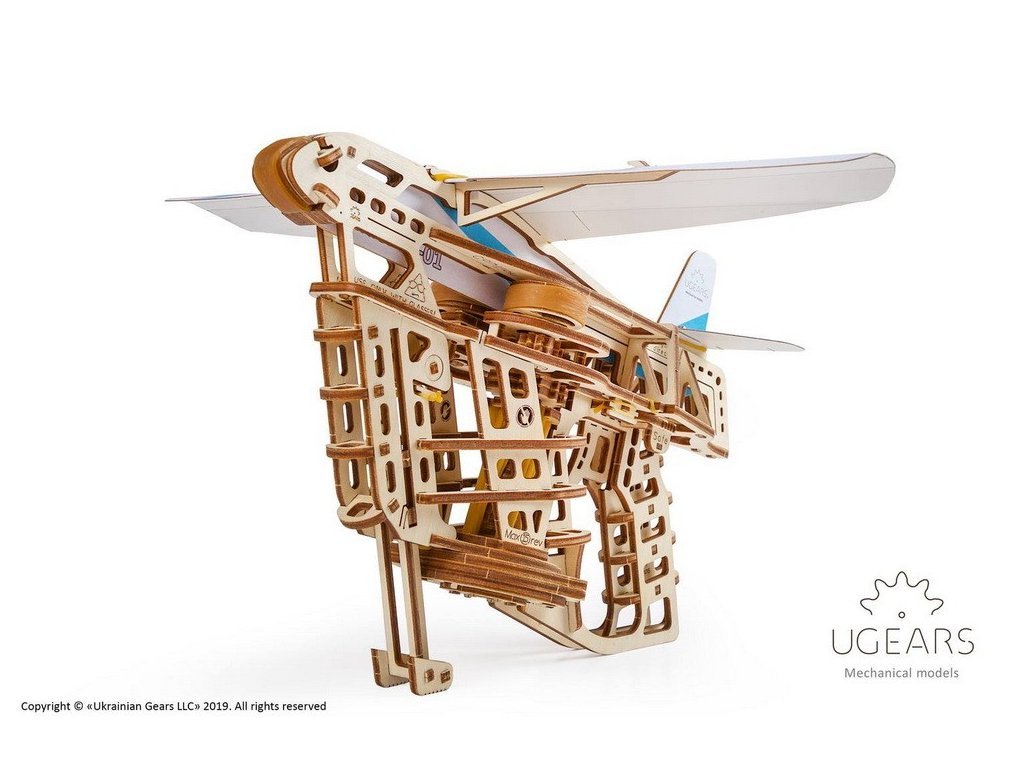 Ugears 3D dřevěné mechanické puzzle Vystřelovací letadlo
