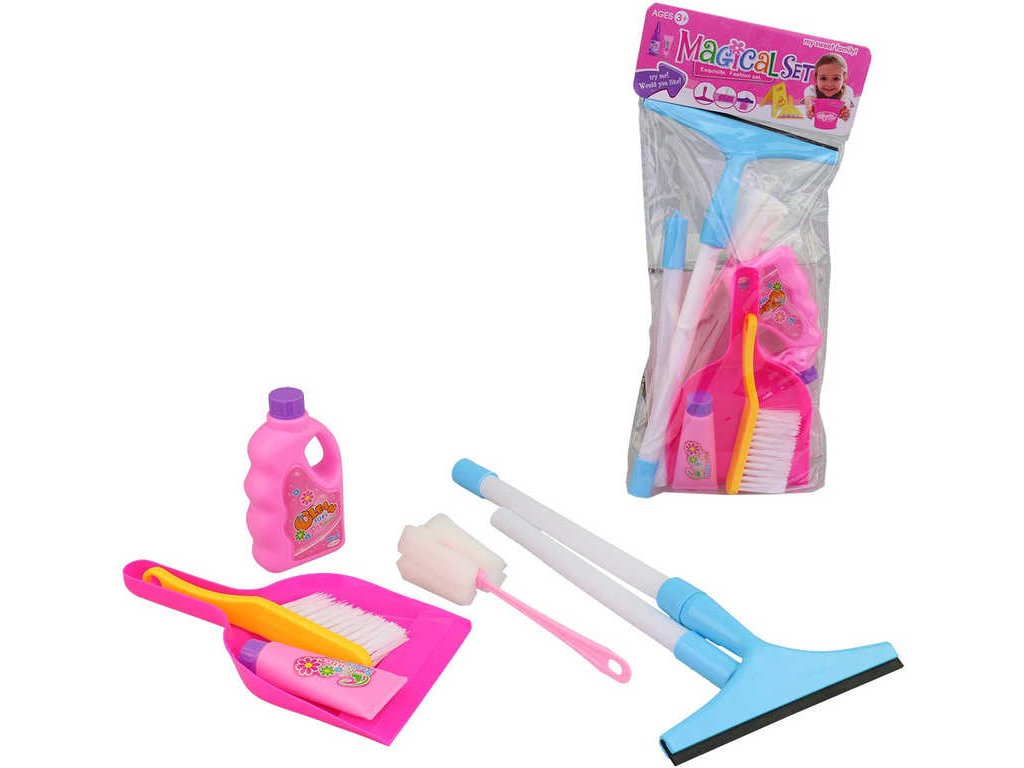 Holčičí plastový uklízecí set, který ocení každá malá pomocnice v domácnosti. Balení obsahuje lopatku se smetáčkem, saponát, krém na ruce a dva praktické nástroje na čištění oken. Baleno v sáčku.