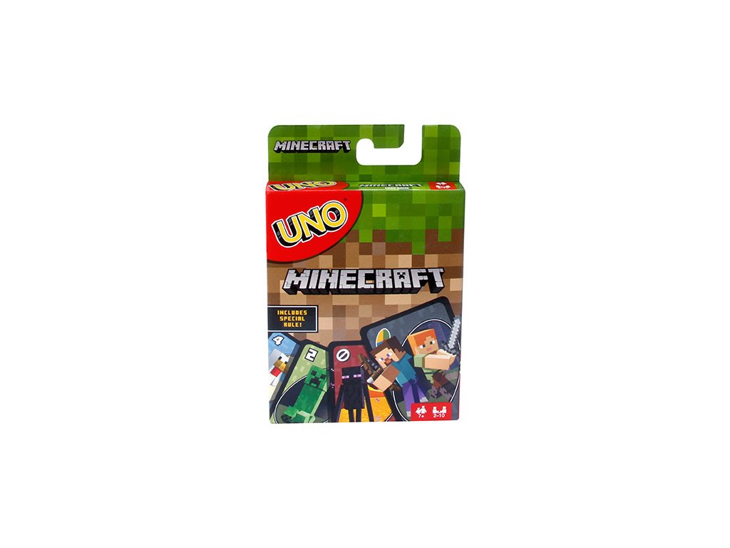 Stejně jako ve hře UNO ™, kterou máte rádi, účastní se hry UNO ™ Minecraft hráči snažící se co nejrychleji zbavit všech svých karet, ale tato verze obsahuje karty s postavami a obrázky Minecraftu a speciální pravidlo! Snažíte se přiřadit kartu ve své ruce k aktuální kartě, která je odkryta navrchu balíčku odložených karet a získáte body za karty, které vašim soupeřům zůstanou v držení. A v UNO ™ Minecraft existuje také nový typ akční karty; když si vytáhnete kartu Creeper, ukažte ji ostatním hráčům a oni si budou muset nabrat další tři karty! První hráč, který dosáhne 500 bodů, vyhrává. Když už máte jen jednu kartu, nezapomeňte zakřičet „UNO!“ Obsahuje 112 karet plus pokyny. Pro 2 až 10 hráčů ve věku od 7 let. Snadné vytáhnout, nemožné odložit. Barvy a dekorace se mohou lišit.