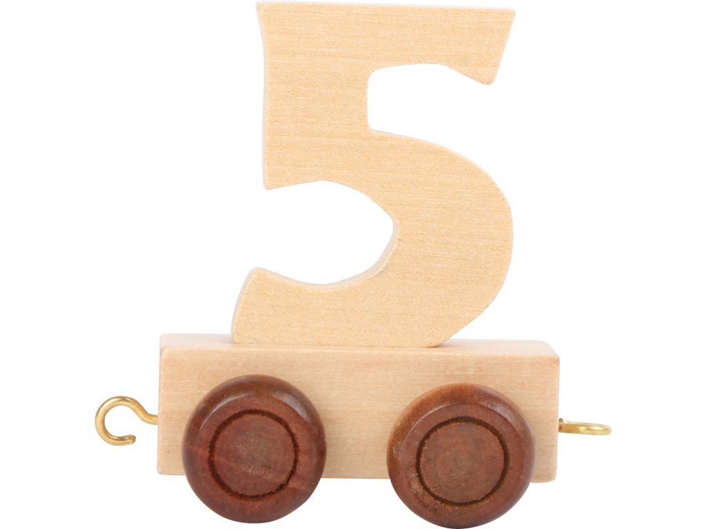 Vagónek dřevěné vláčkodráhy - přírodní číslice - číslo 5