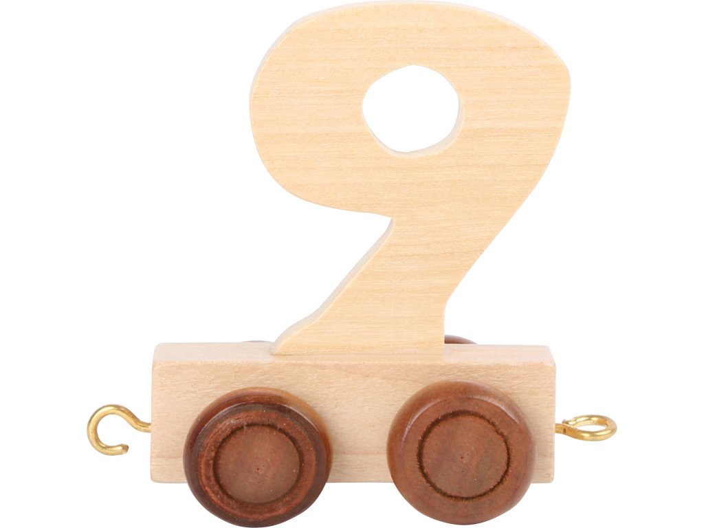 Vagónek dřevěné vláčkodráhy - přírodní číslice - číslo 9