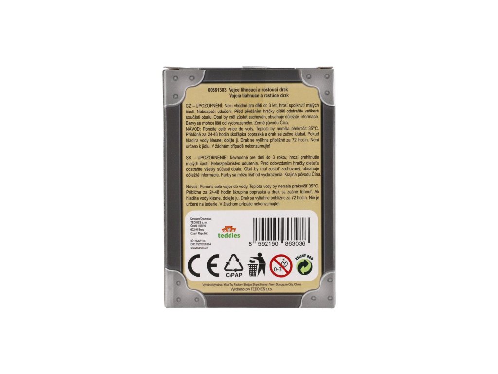 Perfektní dárek pro nadšence draků a také pro milovníky překvapení. Ve vejci je ukryto překvapení ve formě dráčka. Aby se ale z vajíčka vyklubal, je nutné ho ponořit do misky s vlažnou vodou. Přibližně za 24 - 48 hodin skořápka popraská a drak se začne klubat. Postupně tak mohou děti pozorovat, jak se z vajíčka líhne. Překvapení se vyklube cca za 72 hodin.