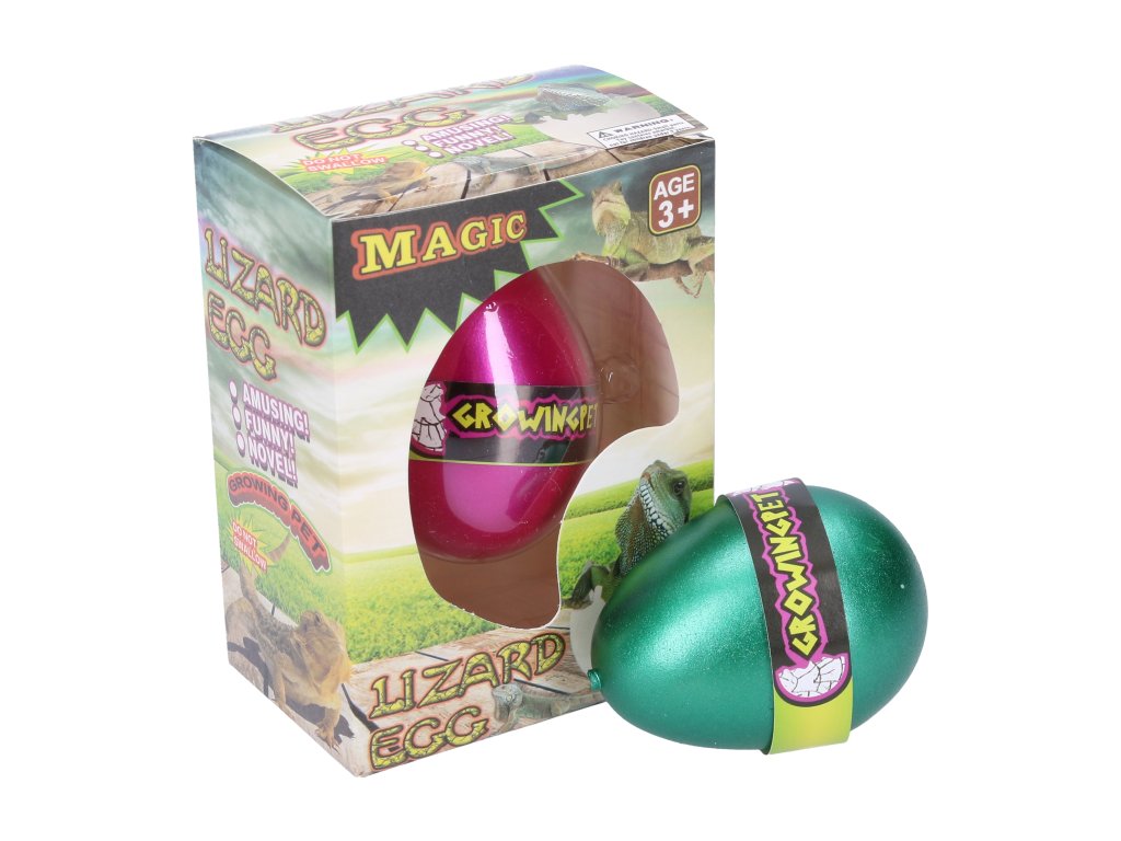 Vejce rostoucí ještěrka. Velikost 6,5 cm. 12 ks display box. 4 varianty - modrá, zlatá, zelená, fialová.
