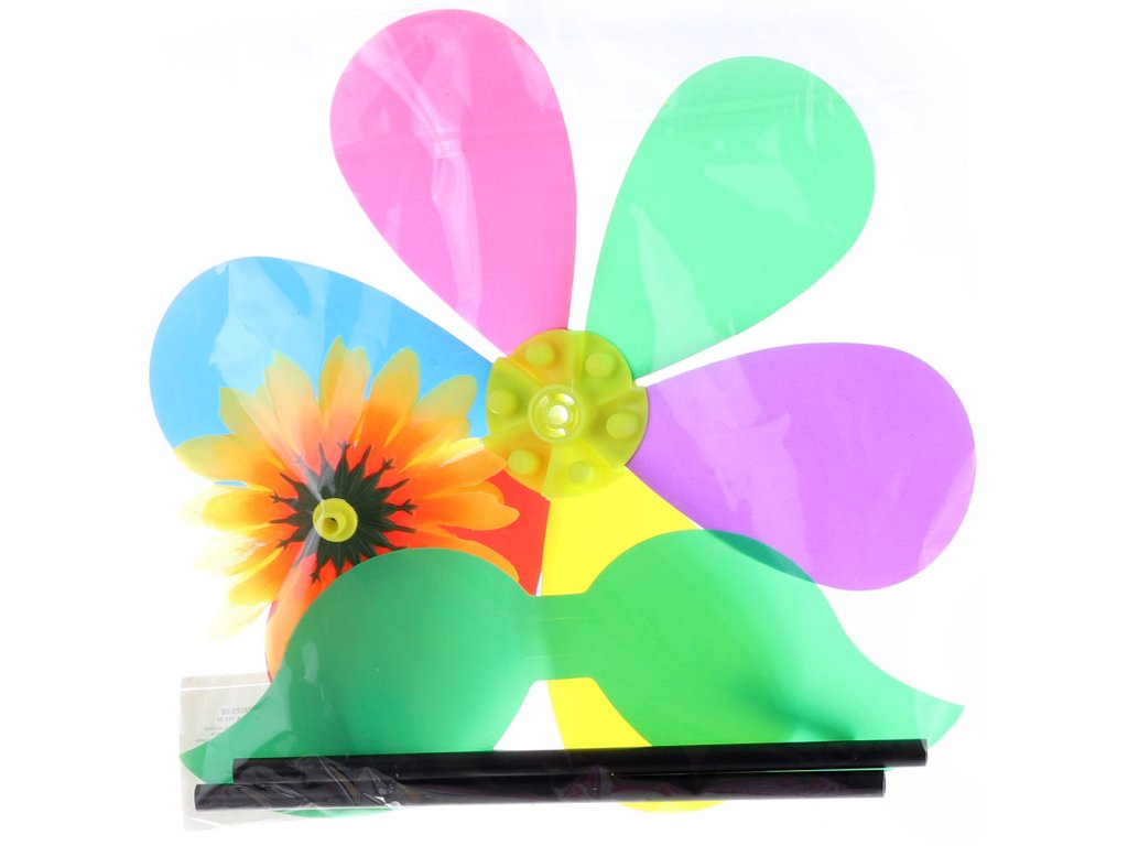 Větrník barevný květina 23x52cm plastová tyčka v sáčku
