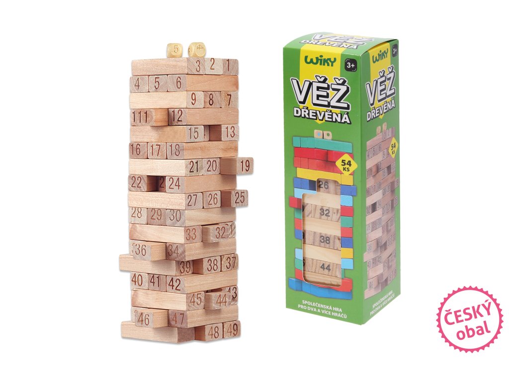 Věž dřevěná s čísly 54 dílků 6,3x6,3x20 cm, Český obal