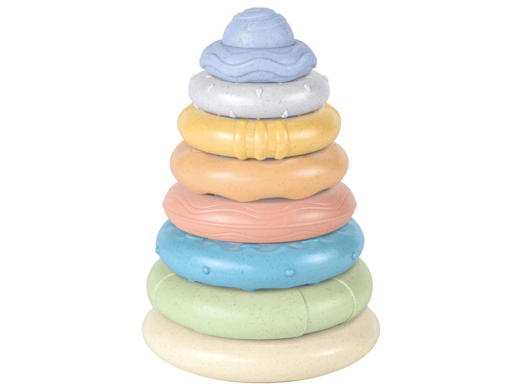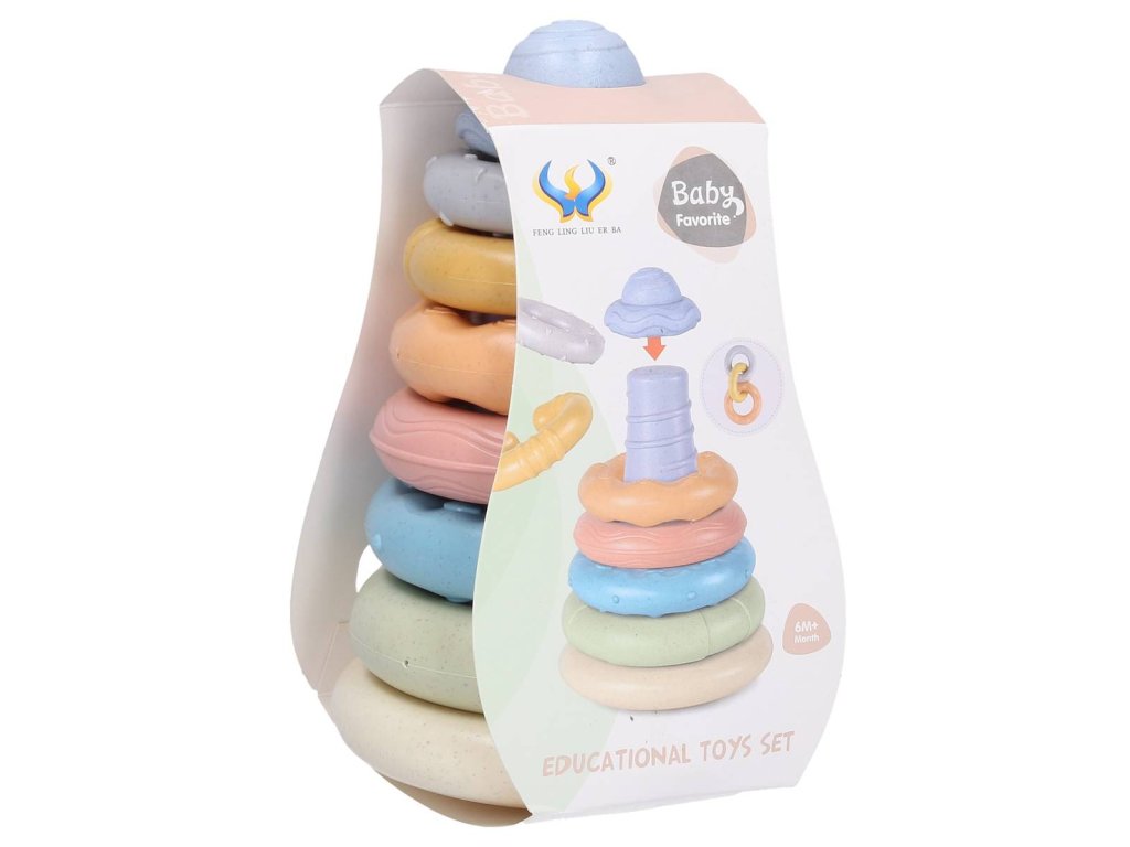 Věž kroužky na tyčce. Velikost 20cm. Kroužky zle navlékat na tyč, nebo spojovat v řetěz.