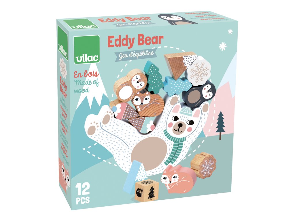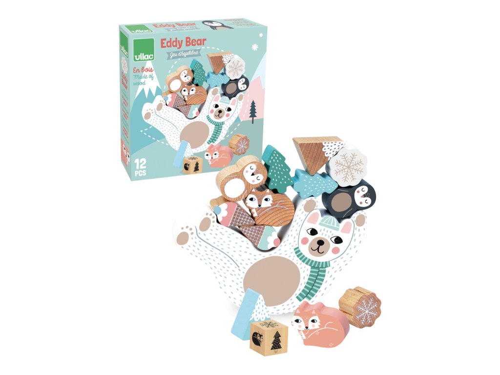 Balanční hra v jemných skandinávských tónech. Hoďte kostkou a podle barvy, která vám padne, zkuste na Eddyho břicho naskládat sněhové vločky, polární lišky, tučňáky nebo hory a chutnou zmrzlinu. Budete nejšikovnější, nespadne vám vše z Eddyho?!Tato hra pomůže s rozvojem jemné motoriky, zručnosti a soustředění.Ilustrováno Michelle Carlslund. Hlavní vlastnosti: 1 základna, 12 herních dílků a kostkailustrace Michelle Carlslundvyrobeno ekologicky, šetrně k životnímu prostředí Cestujte s námi v naivním a elegantním světě dánské ilustrátorky Michelle Carlslund, světě jemných barev, který je plný roztomilých medvědů a přátelských ptáčků. V roce 2010, když Michelle ještě studovala grafický design, vytiskla doma své ilustrace a zkusila je prodat na designovém trhu, kde se setkaly s velkým úspěchem! Několik obchůdků chtělo začít prodávat její výtvory, a tak ji napadlo, že by bylo fajn začít podnikat. Michelle se rychle stala uznávanou nezávislou ilustrátorkou. Dnes lze její ekologická grafická díla zakoupit po celém světě v designových buticích, papírnictvích a dětských obchodech. Michelle se inspiruje vším kolem ní. Její výtvory jsou něžné a poetické, stylizovaný a dětinský styl, který se perfektně prolíná s hračkami firmy Vilac. „Jsem hranolky milující, časová optimistka a tvůrkyně ekologických plakátů a ilustrátorka na volné noze se sídlem v dánské Kodani,“ to by řekla ilustrátorka Michelle Carlslundová, kdyby se měla popsat jednou větou.