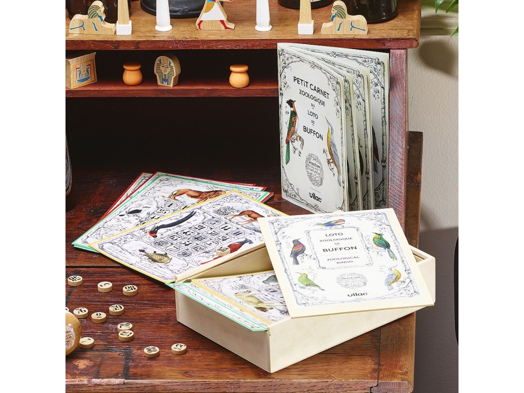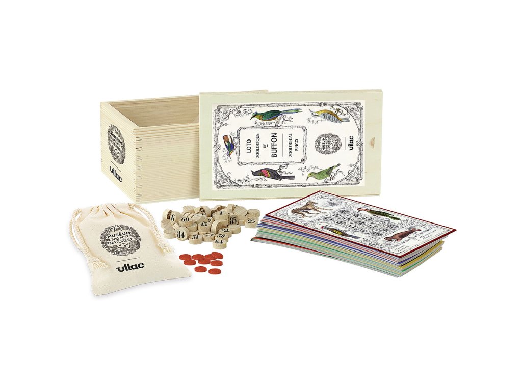 Loto je tradiční hra, kterou také můžete znát pod názvem Bingo. Princip hry je jednoduchý. Děti si rozeberou hrací karty lota a pak si postupně losují čísla. Vyhrává ten, kdo svoji kartu zaplní jako první. Děti tím procvičují postřeh, pozorování, slovní zásobu a logické myšlení.Tato hra byla vyvinuta ve spolupráci s Národním přírodovědným muzeem v Paříži Museum national d'Histoire naturelle. Hlavní vlastnosti: obsahuje 314 dílůpodporuje motorické dovednosti a logické myšlení dětívyvinuto ve spolupráci s Národním přírodovědným muzeem v Paříži Spolupráce Vilac x Muséum national d'histoire naturelle (Národní přírodovědné muzeum) je novinkou roku 2023. Georges-Louis Leclerc, hrabě z Buffonu (1707-1788) byl intendantem královské botanické zahrady Francie bezmála 50 let, od roku 1739 do své smrti. Jeho dílo Histoire naturelle (historie přírody), v 36 ilustrovaných svazcích, mělo neobyčejný úspěch ihned po vydání. V knize obsažená zvířata byla inspirací pro výtvarná umění, módu, dekor, vzdělávací díla a dětské knihy. To dokazuje pexeso Buffon, ilustrovaná hra, vydána okolo roku 1840 v Paříži. Pexeso s 96 zvířaty na 24 kartách vyrobil Nicolas Fleuri Jannin. Reprodukovaná kopie je uložena v Národním přírodovědném muzeu v Paříži.