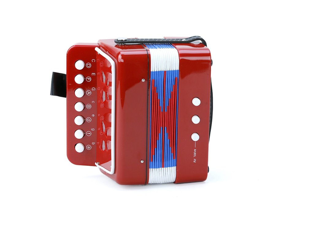 Krásný modro-bílo-červený akordeon, který Vaše děti uvede do světa hudby. Obsahuje deset kláves a má 14 tónin. Hračky Vilac mají značku francouzské agentury ADEME, to znamená, že tyto dřevěné hračky jsou vyráběny ekologicky. Šetří životní prostředí, neznečišťují půdu, vodu a vzduch, neplýtvají energiemi. Hlavní vlastnosti: podporuje lásku k hudbě a rytmiku10 kláves 14 tónin