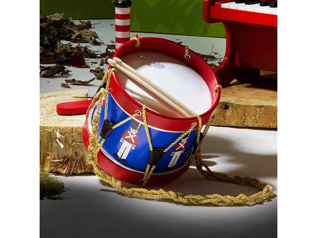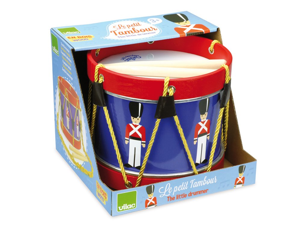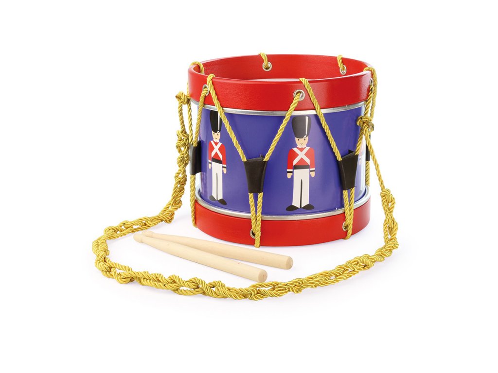 Dětský dřevěný buben s ilustrací vojenského bubeníka. Balení obsahuje také dvě paličky a zlatý pletený provázek, díky kterému si děti mohou buben zavěsit okolo krku a bubnovat tak při pochodu. Hlavní vlastnosti: prohlubuje lásku k hudbě a rytmikukvalitní zpracování
