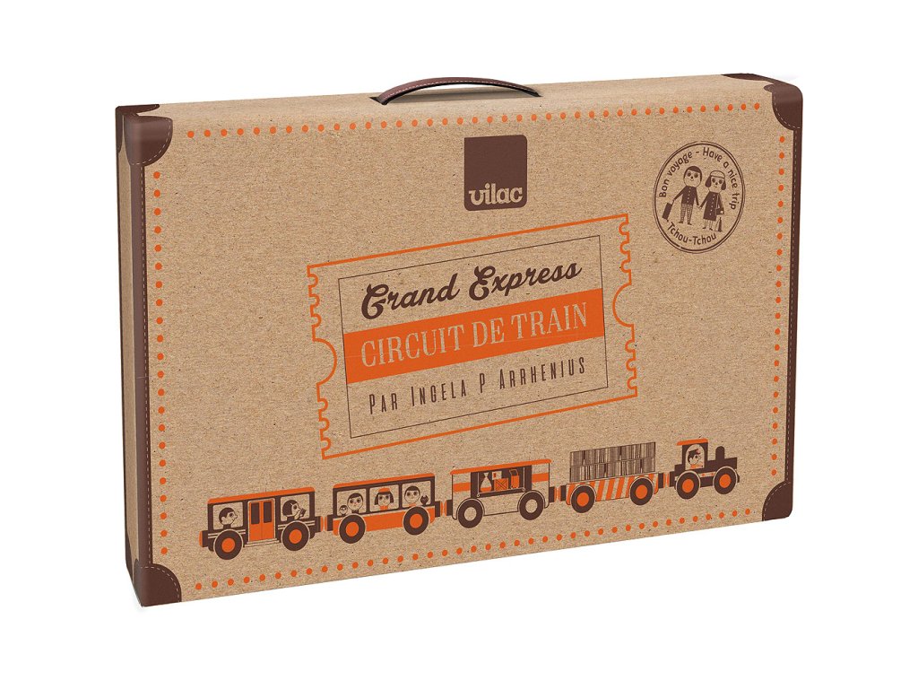 Krásná vláčkodráha Grand Express ve spolupráci s Ingelou P. Arrhenius. Hračka se skládá ze 40 dílků: 1 lokomotivy, 4 vagónů, 24 dílků dráhy, 1 budovy stanice, 2 domů, 4 stromů, 2 dopravních značek. Kompatibilní s dalšími vláčkodráhami dostupnými na trhu. Vláčkodráha je zabalena v retro kufříku. Vhodné od 3 let. Hlavní vlastnosti: obsahuje 40 dílůpraktické balení v kufříkukompatibilní rozměry kolejí s jinými vláčkodráhamidesign Ingela P. Arrhenius Švédská umělkyně Ingela Peterson Arrhenius se narodila v roce 1967. Umění a design měly vždy místo v jejím životě a než začala její kariéra ilustrátorky, Ingela pracovala jako umělecká vedoucí ve Stockholmu. Poté studovala reklamní a grafický design na umělecké škole také ve Stockholmu. V roce 1992 začala podnikat jako ilustrátorka na volné noze a pracovala mezinárodně napříč reklamou, designem, nakladatelstvím… V minulosti vytvářela tiskové vzory pro tkaniny, tapety, papírnictví, také pracovala na obalech, produktovém designu, bytových doplňcích a hračkách. Její plakáty a designové hračky najdete po celém světě. Má vášeň pro retro styl, což je jasně vidět na jejich dílech a také v jejím nadšení pro typografii a barvy. Nyní žije ve Stockholmu s manželem a dvěma syny.
