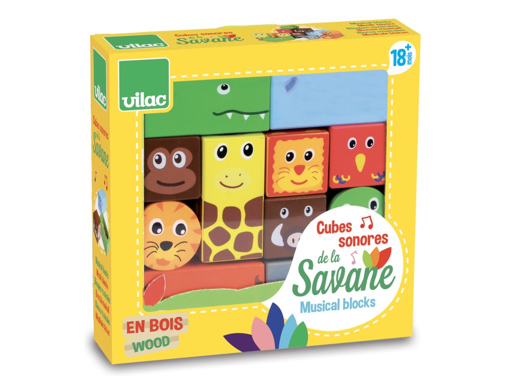 Vilac Dřevěné zvukové kostky Savana