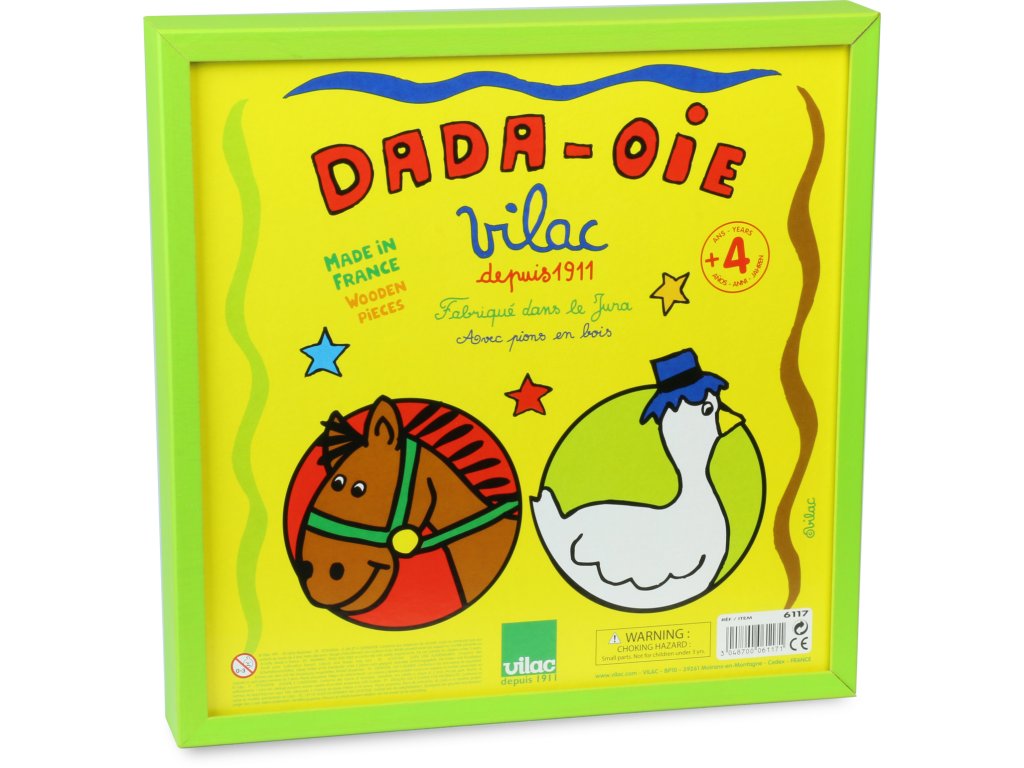 Klasický dřevěný soubor her. Na jedné straně najdete Člověče nezlob s figurkami koní, na druhé Husí hru. Husí hra spočívá v tom, že se dva nebo tři hráči pohybují po spirálovitém hracím poli a snaží se vyhnout políčkům s nástrahami jako například „most“ nebo „hotel“. Zábavné hry pro malé i velké. Vyrobeno ve Francii. Hlavní vlastnosti: soubor klasických hervyrobeno ve Francii Dokumentace: Návod ke hře Dřevěný soubor her (CZ)Návod ke hře Dřevěný soubor her (SK)