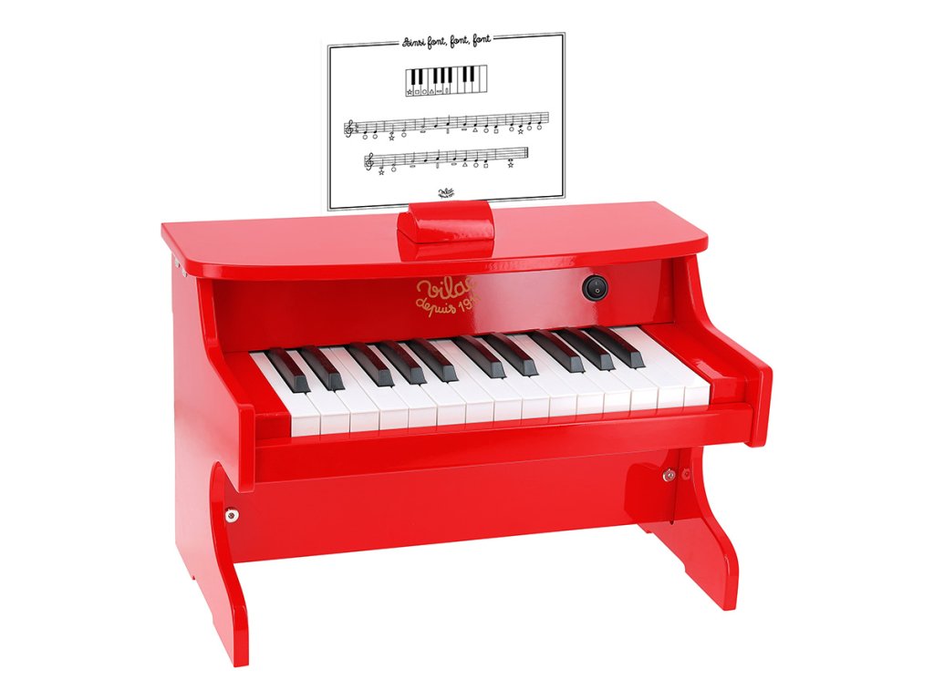 Všichni sníme o tom, že se jednoho dne staneme virtuosem na hudební nástroj, Beethovenem, Mozartem nebo umělcem svých snů! Proč tedy nepodpořit Vaše dítě aby podniklo své první kroky v hudebním světě právě krásným pianem? Toto elegantní piano z odolného dřeva je dodáváno s partiturou o 10 stránkách. Běží na baterie a má režim automatického vypnutí po několika minutách nečinnosti. Piáno vydává krásné zvuky a rozvíjí vztah k hudbě, ale není to profesionální hudební nástroj. Hračka není dokonale naladěná, slouží především k zábavě. Hlavní vlastnosti: piano a 10 stran partitur18 klávesodolné a atraktivní zpracováníbaterie nejsou součástí balení