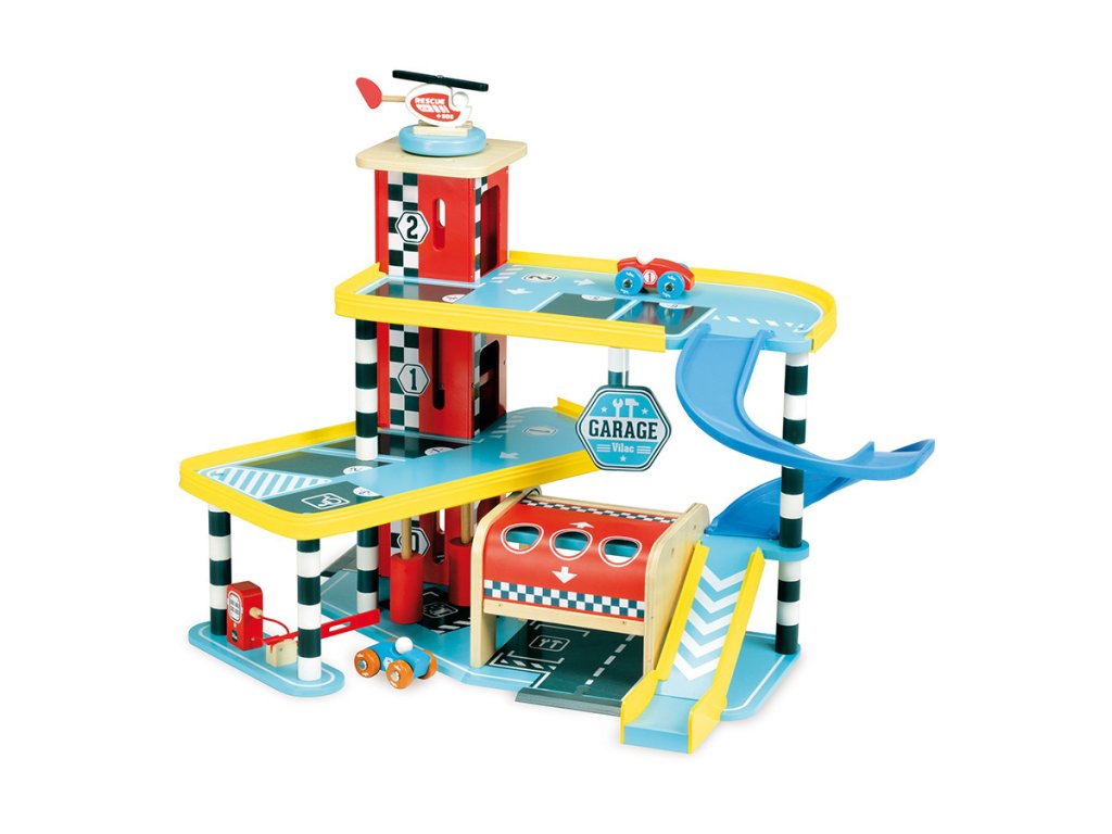 Hračka pro malé závodníky. Jste připraveni na nová dobrodružství? Velká dřevěná garáž s rampou, která nabízí množství mechanických detailů jako jsou výtah, zatahovací dveře, parkovací závora, čerpací stojan nebo mycí kartáče. Součástí garáže je také dvojice autíček a helikoptéra. Výrobek vyžaduje montáž, dodáváno s detailním návodem k sestavení. Tento dřevěný dětský herní set podporuje fantazii a rozvíjí oblíbené imitativní hry. Děti tak mohou být řidiči či mechaniky a objevovat svět autíček a dopravních situací. Hlavní vlastnosti: garáž, 2 autíčka a helikoptéramyčka, parkoviště, benzínka i přistávací plocha pro vrtulníkvyrobeno ekologicky, šetrně k prostředírozvíjí motorické dovednosti a představivostzlepšuje obratnostmultifunkční garážkreativní a vzdělávací hračka
