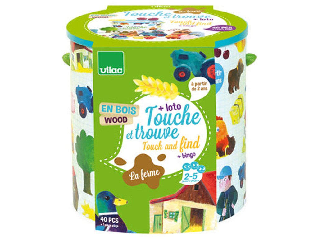 Nepřekonaný bestseller Vilac se originálním způsobem snaží rozvíjet často opomíjený smysl dětí, hmat. Hra je tvořená zejména dřevěnými figurkami ukrytými v kyblíku vybaveném uvnitř jemným látkovým sáčkem. Menší děti mají za úkol po vložení ruky do tuby jen na základě hmatání popsat svými slovy, jaký předmět drží v ruce. Rodiče mohou postup dětem předvést názorným příkladem. Starší děti mohou hrát hru ve formě lota, nebo binga, k těmto hrám jsou v sadě k dispozici obrázkové karty jednotlivých předmětů. Hlavní vlastnosti: 21 herních dílků a 20 obrázkových karetpro 2–5 hráčůrůzné herní variantypraktické balení Návod ke hře: Hmatej a najdi:První hráč si vezme kartu z hromádky. Poté musí sáhnout do sáčku a podle hmatu najít dřevěný dílek, který odpovídá obrázku na kartě. Pokud vybere správný dílek, kartu si ponechá a na řadě je další hráč, který opět začíná tažením karty z hromádky. Pokud ale první hráč vybere nesprávný dílek, musí svou kartu předat dalšímu hráči, který se musí pokusit najít správný dílek. Po každém kole se dílky vrací zpět do sáčku. Když už na hromádce nezbývá žádná karta, určí se vítěz. Vítězí hráč s největším počtem karet. Pozor! Pokud jeden z hráčů náhodou vytáhne dílek ve tvaru muchomůrky, musí všechny své karty vrátit na hromádku! Pravidla můžete upravit dle vlastního uvážení, aby se děti lépe seznámily s hmatáním a hledáním předmětů: 1 – Začněte s malým množstvím dřevěných dílků.2 – Dovolte dětem podívat se do sáčku.3 – Poté hru opět udělejte o něco těžší, nedovolte jim nahlížet do sáčku.4 – Přidejte do sáčku více dílků.5 – Nakonec, až si děti na hru zvyknou, hrajte podle tradičních pravidel. BINGO varianta:Rozložte 4 karty do čtverce a vytvořte jedno, nebo více hracích polí pro každého hráče. Jeden z hráčů, nebo rodič vytáhne dílek ze sáčku a vyvolá ho. Hráč, který má kartu odpovídající tomuto vyvolanému dílku, si jej vezme a položí na svou kartičku. Vítězí hráč, který jako první zaplní své herní pole! Dokumentace: Návod ke hře Hmatej a najdi farma (CZ)Návod ke hře Hmatej a najdi farma (SK)