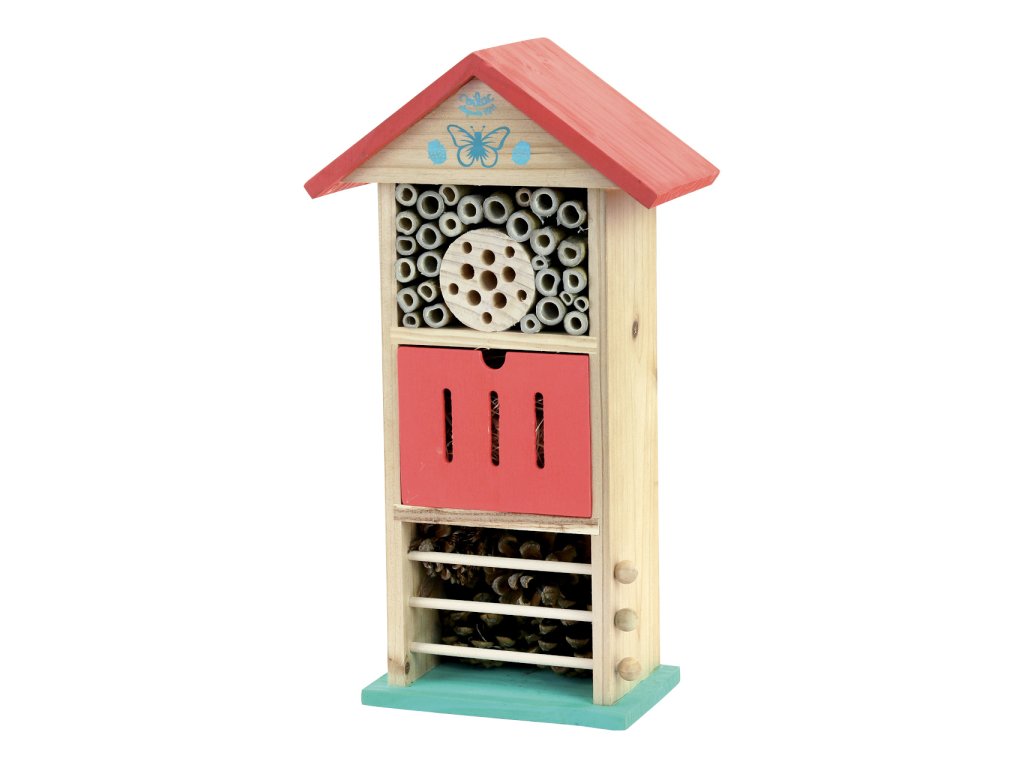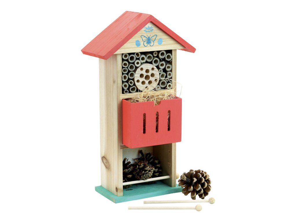 Entomologové pozor! Kdo chce pozorovat malá stvoření, rozhodně potřebujete tento domeček pro hmyz. Hmyzí hotel obsahuje trubičkové otvory, zásuvku na vystýlku a volný prostor třeba pro šišky nebo klacíky. Různé druhy hmyzu si zde vytvoří dokonalý domov. Hlavní vlastnosti: praktická didaktická pomůcka