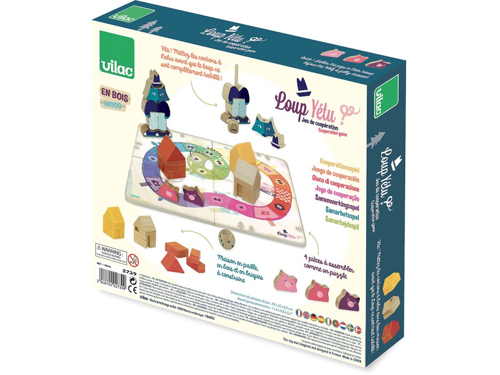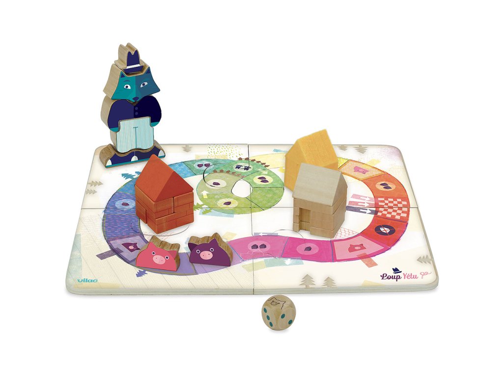Tato hra je inspirována ve Francii známým rýmem ze 17. století (Kde jsi, vlku?) a příběhem o 3 malých prasátkách. Prasátka hrají proti vlkovi. Zatímco se vlk obléká, musí prasátka urychleně postavit nejprve slaměný, poté dřevěný a nakonec cihlový domeček. Jakmile dokončí poslední domeček (střecha musí být na svém místě), hra končí: prasátka jsou v bezpečí a hra je vyhrána!Buďte opatrní, pokud je vlk oblečen dříve, než prasátka dostaví cihlový domek, může jej sfouknout a hra bude prohrána!V návodu kooperativní i sólo verze. Dřevěná hra, která nesmí chybět ani u vás doma! Obsah hry: 1 dřevěná hrací deska (ze 4 dílků puzzle), 1 dřevěný vlk (5 stohovatelných dílků), 3 figurky (prasátka), 3 domečky k výstavbě (každý 5 ks) a 1 kostka Hlavní vlastnosti: hra na motivy známé pohádkyobsahuje 29 dílů Dokumentace: návod ke hře Tři prásátka (CZ)návod ke hře Tři prásátka (SK)návod ke hře Tři prásátka (FR, EN, DE, ES, IT, PT, NL, SE, DA)