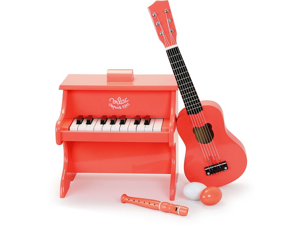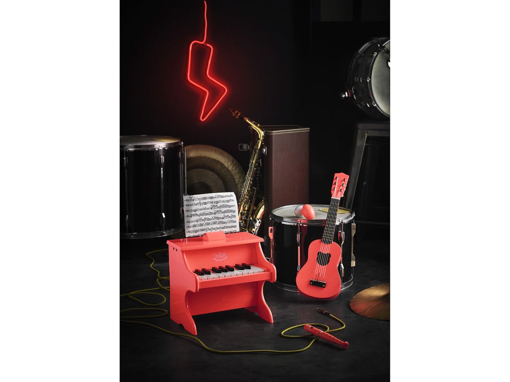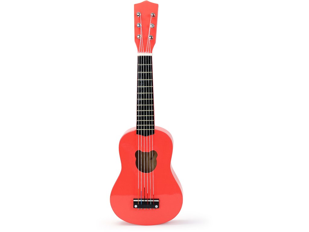 Pěkná kytara ze dřeva lakovaná pestře oranžovou barvou. Pro bláznivé i klidné koncerty v dětském pokojíčku. Kytara má 6 nylonových strun, v balení také jedna náhradní a trsátko. Od 3 let věku. Vezměte prosím na vědomí, že tento produkt je napodobeninou, nikoli skutečným hudebním nástrojem. Hlavní vlastnosti: kvalitní zpracováníprohlubuje lásku k hudbě a rytmiku