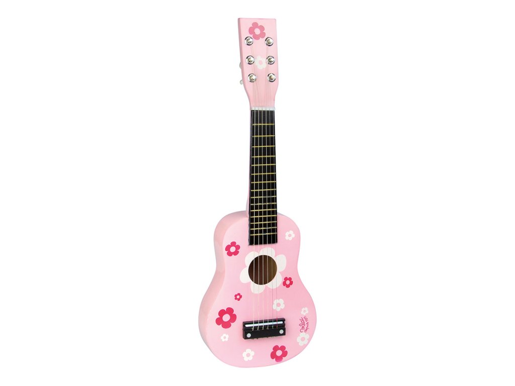 Klasická dřevěná akustická kytara se šesti strunami v růžové barvě s ilustrací. Kytara má natažené nylonové struny. V balení s trsátkem a jednou náhradní strunou. Nejedná se o hudební nástroj, ale pouze o hračku. Hlavní vlastnosti: nylonové struny se dají utáhnout na kolícíchideální pro první hranírozvíjí talent dětí