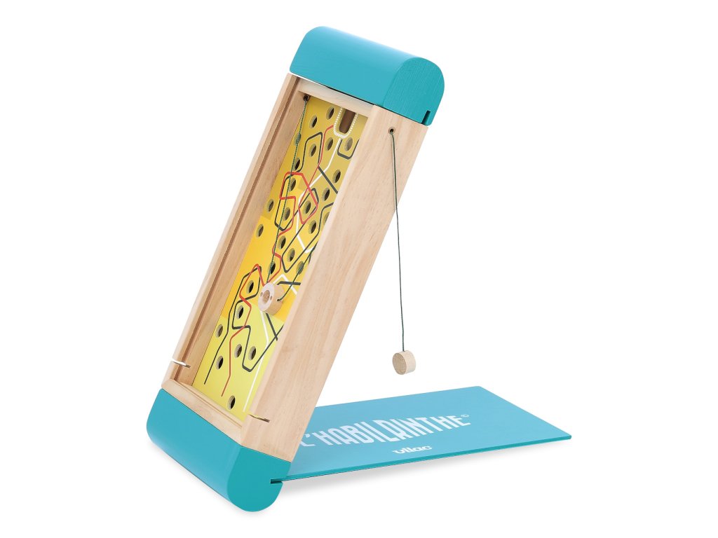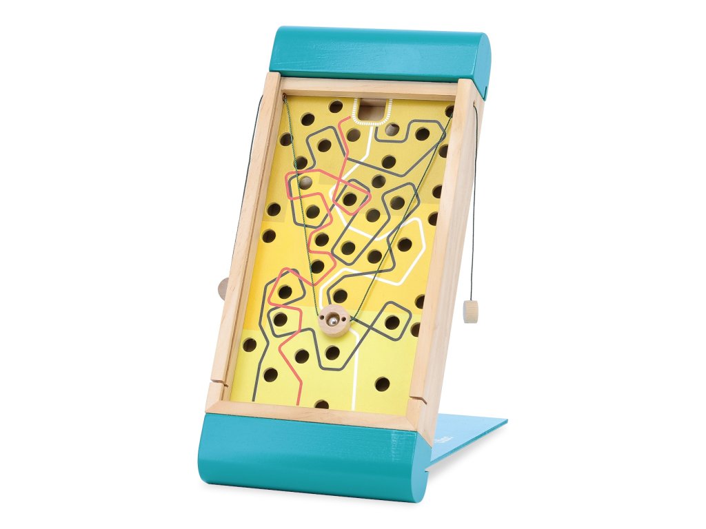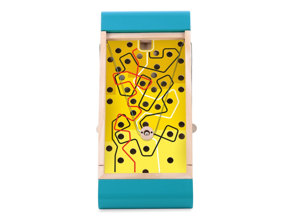 Proveďte neposednou kuličku cestami plnými nástrah v podobě propadlišť. Labyrint Vám přináší zábavu, která důkladně prověří Vaši šikovnost a trpělivost, a to rovnou ve dvou variantách! Na jedné straně pohyb kuličky ovládejte táhly a vyberte si přitom jednu z trojice barevně vyvedených tras s různou obtížností. Na opačné straně směřování kuličky ovlivňujte pouhým náklonem labyrintu. Hračka je velmi kompaktní, opatřená praktickým víkem, které díky promyšlené konstrukci využijete i jako oporu při hře. Je vyrobena z pečlivě opracovaného a atraktivně lakovaného dřeva. Hlavní vlastnosti: labyrint a 3 kuličkyjedinečný design a zpracovánípraktické a kompaktní balení