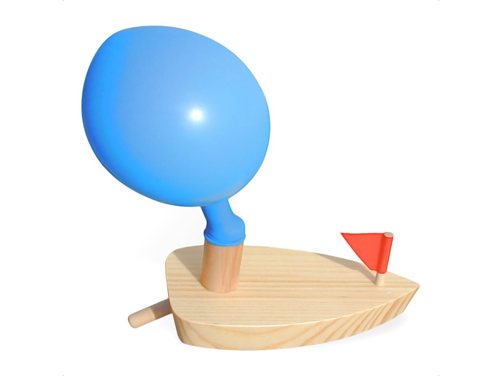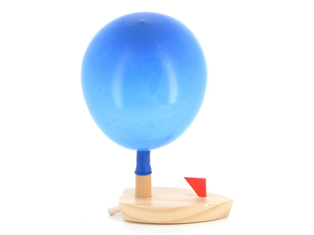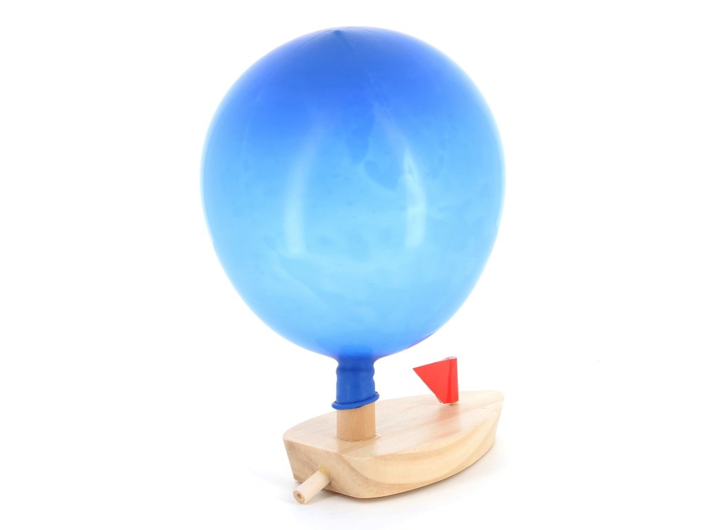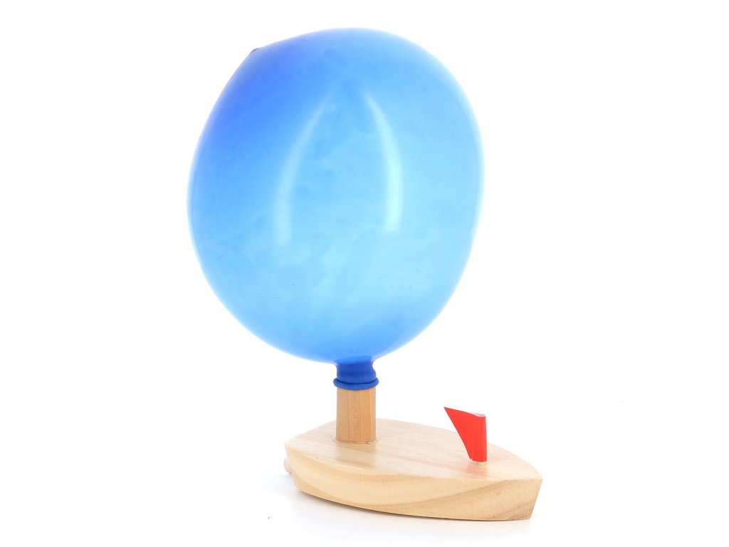 Při vypouštění vzduchu z balónku se dřevěná loďka pohybuje vpřed. Hlavní vlastnosti: plave pomocí nafouknutého balónku