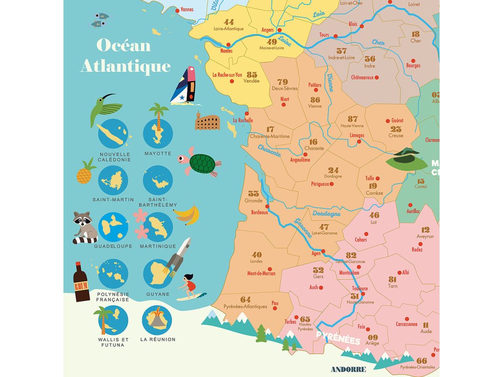 Magnetická mapa Francie s dřevěnými dílky pro zábavné poznávání zeměpisu. Ve Francii jsou krásné hory, řeky, moře a oceán. Ale také velká a malá města, slavné památky jako Eiffelova věž a další o něco méně známé, ale stejně zajímavé místa. Sousedící ostrovy, regiony, a spoustu symbolů s jasným významem. Mapa vystihuje také francouzskou gastronomii, vinařské oblasti a šampaňské! Design Ingela P. Arrhenius. Hlavní vlastnosti: obsahuje 1 mapu a 92 dílkůdesign Ingela P. Arrhenius Švédská umělkyně Ingela Peterson Arrhenius se narodila v roce 1967. Umění a design měly vždy místo v jejím životě a než začala její kariéra ilustrátorky, Ingela pracovala jako umělecká vedoucí ve Stockholmu. Poté studovala reklamní a grafický design na umělecké škole také ve Stockholmu. V roce 1992 začala podnikat jako ilustrátorka na volné noze a pracovala mezinárodně napříč reklamou, designem, nakladatelstvím… V minulosti vytvářela tiskové vzory pro tkaniny, tapety, papírnictví, také pracovala na obalech, produktovém designu, bytových doplňcích a hračkách. Její plakáty a designové hračky najdete po celém světě. Má vášeň pro retro styl, což je jasně vidět na jejich dílech a také v jejím nadšení pro typografii a barvy. Nyní žije ve Stockholmu s manželem a dvěma syny.