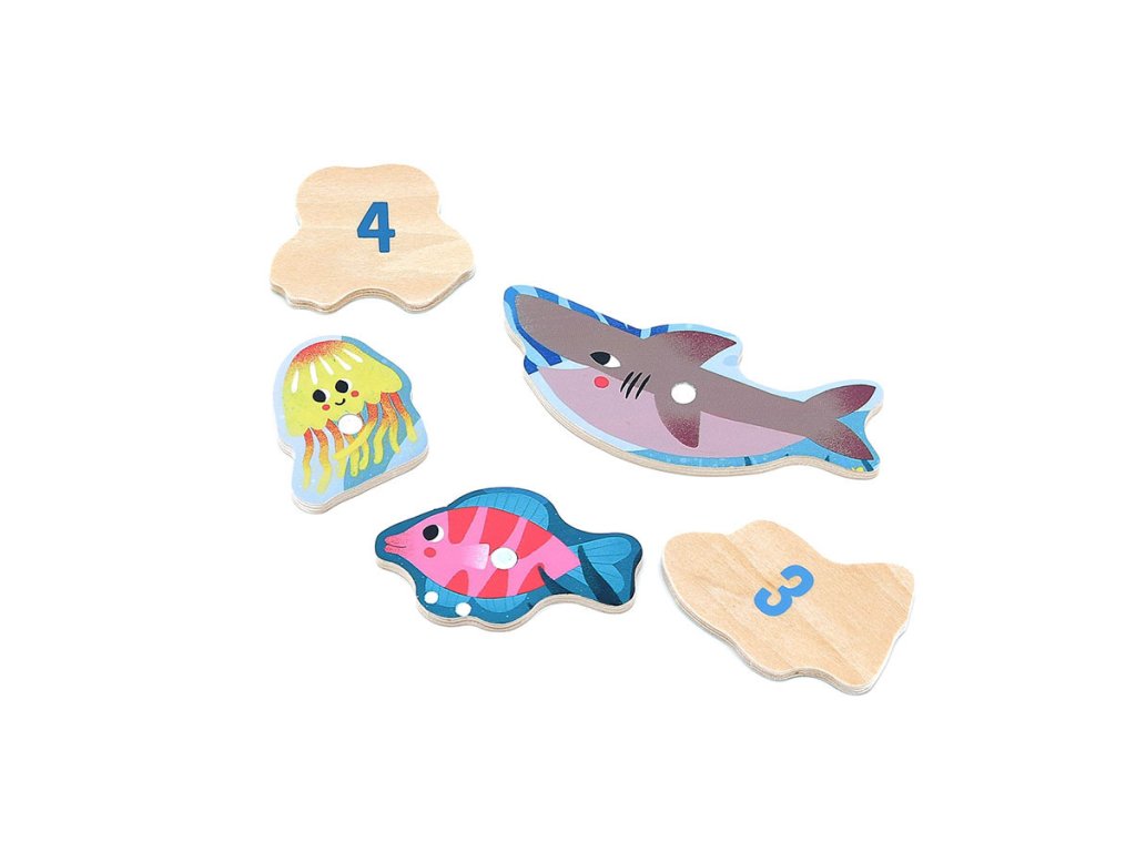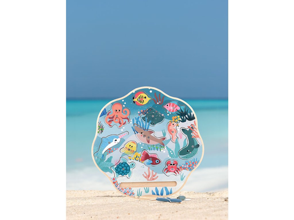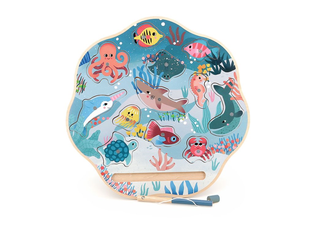 Magnetická hra, která Vás opravdu nadchne! Rybařte s mořskými živočichy v krásném designu od ilustrátorky Michelle Carlsund. Podaří se Vám z moře vytáhnout rejnoka, velrybu, kraba, želvu či medúzu? K dispozici je celkem 12 barevných mořských zvířatek. Chyťte je všechny! Každý živočich má na zadní straně číslo, které označuje body. Až se Vám podaří vytáhnout všechny mořské živočichy, otočte je dnem vzhůru a spočítejte si body. Při hře tedy nezáleží na tom, kolik zvířatek se Vám podaří prutem vytáhnout, ale na tom, kdo má více bodů. Hra stimuluje kognitivní vývoj vašeho dítka. Rozvíjí koordinaci ruka-oko a jemnou motoriku. Podporuje také smyslové a vzdělávací učení. Hra obsahuje: 12 dřevěných mořských živočichů, 2 dřevěné pruty s magnetem a 1 herní základnu Hlavní vlastnosti: klasická hra v krásném designuinspirováno Montessori hračkamirozvíjí soustředění a trpělivostnapomáhá učení počítání a zapamatování sivhodné od 2 lettato hra může sloužit také jako vkládací puzzle Cestujte s námi v naivním a elegantním světě dánské ilustrátorky Michelle Carlslund, světě jemných barev, který je plný roztomilých medvědů a přátelských ptáčků. V roce 2010, když Michelle ještě studovala grafický design, vytiskla doma své ilustrace a zkusila je prodat na designovém trhu, kde se setkaly s velkým úspěchem! Několik obchůdků chtělo začít prodávat její výtvory, a tak ji napadlo, že by bylo fajn začít podnikat. Michelle se rychle stala uznávanou nezávislou ilustrátorkou. Dnes lze její ekologická grafická díla zakoupit po celém světě v designových buticích, papírnictvích a dětských obchodech. Michelle se inspiruje vším kolem ní. Její výtvory jsou něžné a poetické, stylizovaný a dětinský styl, který se perfektně prolíná s hračkami firmy Vilac. „Jsem hranolky milující, časová optimistka a tvůrkyně ekologických plakátů a ilustrátorka na volné noze se sídlem v dánské Kodani,“ to by řekla ilustrátorka Michelle Carlslundová, kdyby se měla popsat jednou větou.