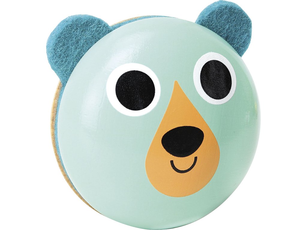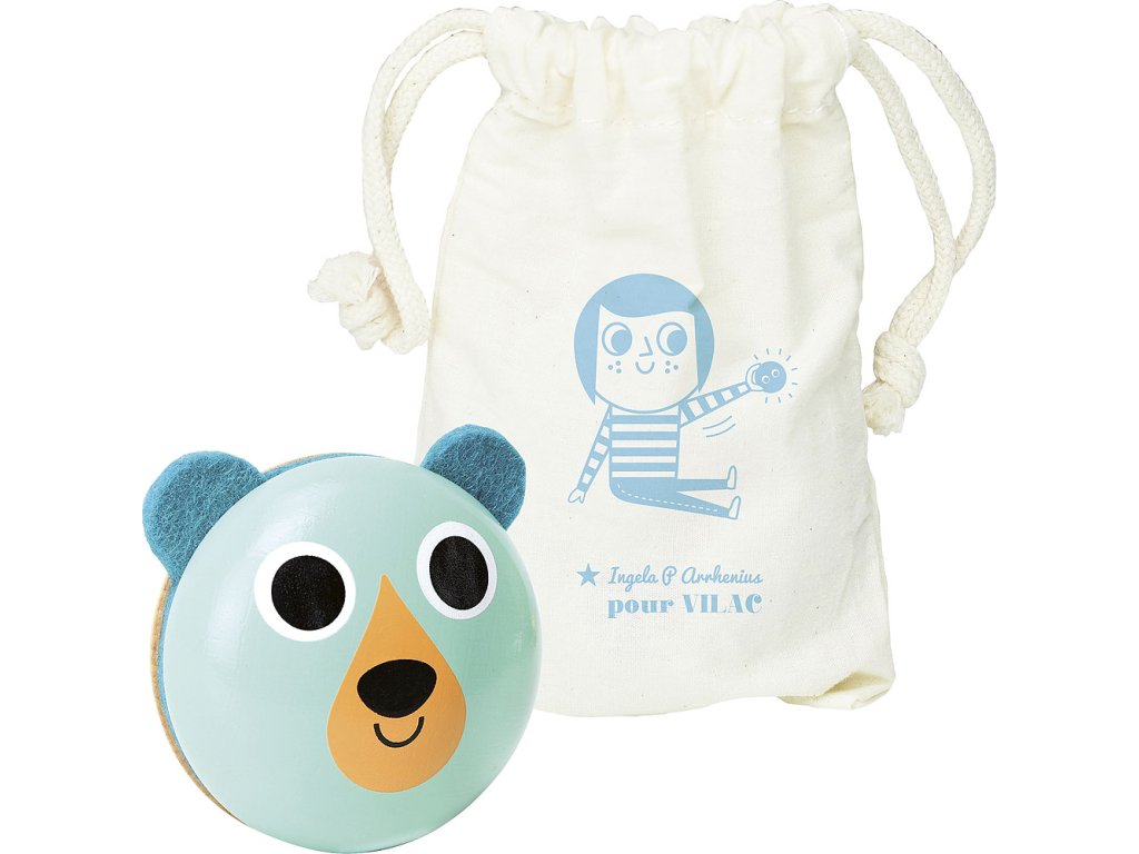 Pěkný medvídek jako chrastítko – rumba koule. Ilustrace Ingela P. Arrhenius. Vyrobeno ze dřeva a plstě ve Francii. Průměr 8 cm. Hlavní vlastnosti: vyrobeno ve Franciidesign Ingela P. Arrhenius Švédská umělkyně Ingela Peterson Arrhenius se narodila v roce 1967. Umění a design měly vždy místo v jejím životě a než začala její kariéra ilustrátorky, Ingela pracovala jako umělecká vedoucí ve Stockholmu. Poté studovala reklamní a grafický design na umělecké škole také ve Stockholmu. V roce 1992 začala podnikat jako ilustrátorka na volné noze a pracovala mezinárodně napříč reklamou, designem, nakladatelstvím… V minulosti vytvářela tiskové vzory pro tkaniny, tapety, papírnictví, také pracovala na obalech, produktovém designu, bytových doplňcích a hračkách. Její plakáty a designové hračky najdete po celém světě. Má vášeň pro retro styl, což je jasně vidět na jejich dílech a také v jejím nadšení pro typografii a barvy. Nyní žije ve Stockholmu s manželem a dvěma syny.