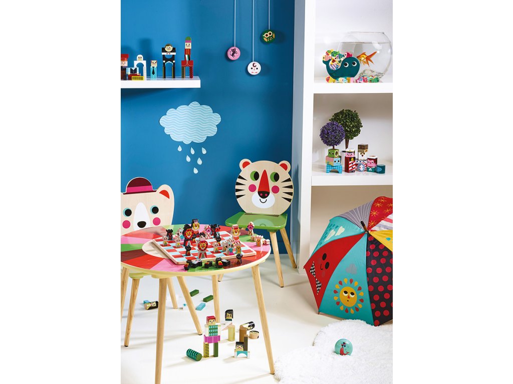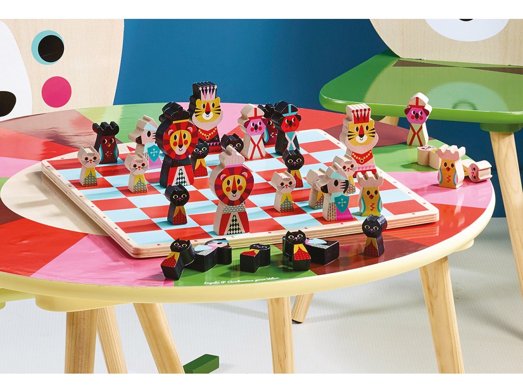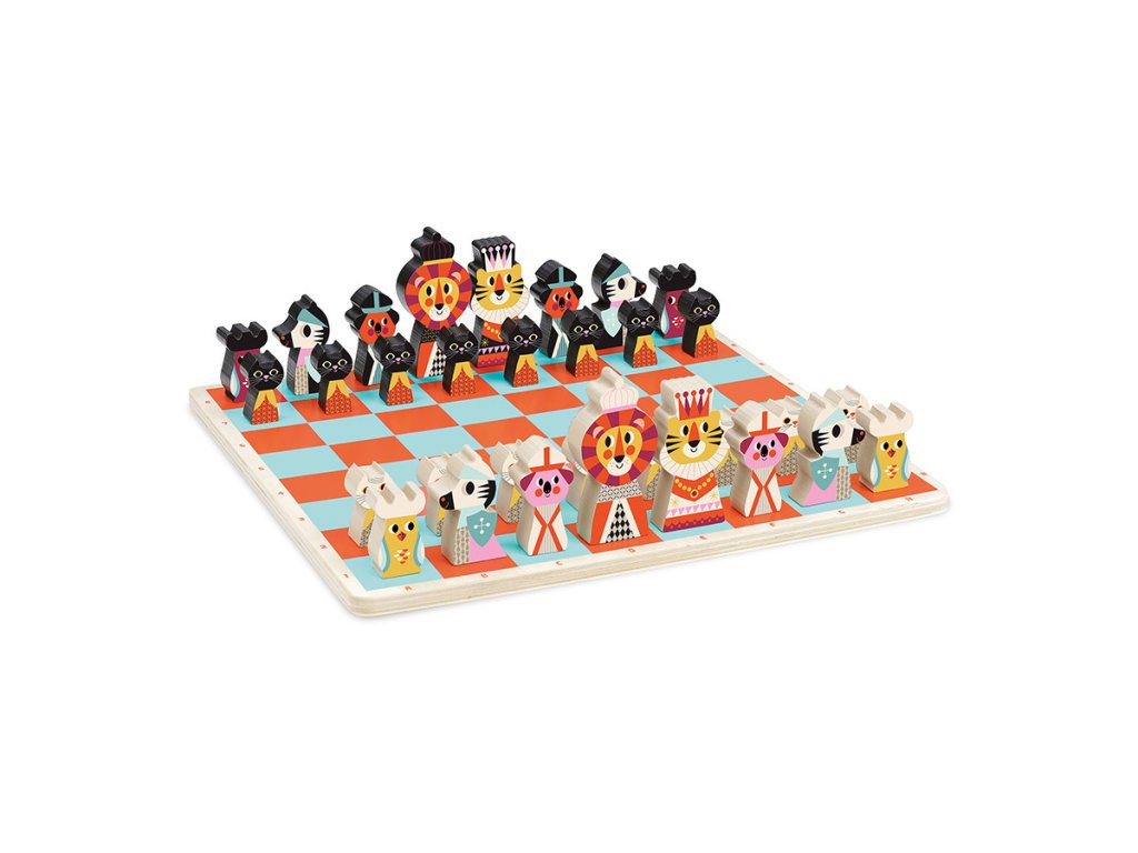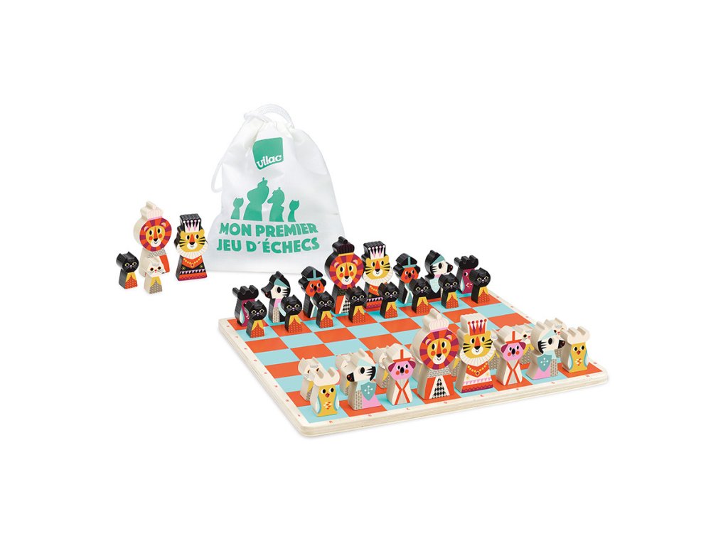 Barevné šachy pro nejmenší s dřevěnými figurkami zvířat. Lehce upoutají pozornost dětí a ty si tak snadněji osvojí princip hry. Figurky jsou uloženy v látkovém pytlíku. Balení obsahuje 32 dílků. Ilustrováno Ingelou P. Arrhenius. Hlavní vlastnosti: dřevěná herní deska i figurkybarevná hra stimuluje smysly dětídesign Ingelou P. Arrhenius Návod hryObsah hry: herní plán16 černých a 16 bílých šachových figurekbavlněný pytlík Dva hráči, "černý" a "bílý" mají vedle svého krále 15 dalších figurek: dámu, 2 střelce, 2 jezdce, 2 věže a 8 pěšců. Startovní pozice:Na začátku hry se dílky rozestaví jako na obrázku č. 1, který naleznete v originálním návodu v balení.Král vždy stojí na poli E, královna na poli D. Začíná bílý hráč, poté se hráči na tahu střídají po jednom tahu. Hráč se nikdy nemůže svého tahu vzdát. Žádným tahem se figurka nesmí přesunout na políčko, na kterém již stojí jiná figurka stejné barvy. Figurky se pohybují vždy na prázdná místa, výjimkou je jen braní soupeřovy figurky. V tomto případě hráč postaví svou figurku na místo vzaté figurky soupeře. Jezdec je jediná figurka, která může přeskakovat ostatní figurky.Braní soupeřovy figurky spočívá v tom, že se tato figurka odstraní políčka a na stejné políčko se postaví figurka, která ji vzala.Cílem hry je dát šach-mat králi oponenta.Šach nastává, když nějakým tahem napadnete soupeřova krále, tzn. přesunete figurku tak, že by potenciálně příštím tahem mohla krále brát, tomuto se říká šach. Pokud taková situace nastane, je soupeř povinen hrát tak, aby tuto hrozbu odvrátil. Např. táhnout králem na políčko, které není napadeno nebo před krále postavit jinou figurku a tím odvrátit útok nebo napadající kámen sebrat.Pokud neexistuje žádný tah, který by vyhovoval pravidlům, znamená to mat neboli šach-mat, tzn. konec hry a vítězství hráče, který dal mat. Podle pravidel se figurka krále nedá vzít, při šach-matu se proto pokládá ležmo na hrací desku. Jak se pohybují jednotlivé dílky:Hra je zajímavá tím, že se každá figurka pohybuje jinak. KrálMůže se pohybovat o jedno políčko do všech směrů, samozřejmě ne na políčka, která jsou ohrožována figurkami spoluhráče. Dva králové nikdy nemohou být na sousedních polích. Cílem hry je dát šach králi protihráče. Král nemůže být nikdy vzatý. Pokud některý hráč napadá oponentova krále, musí ho upozornit vyřknutím slova “šach”. DámaJe nejsilnější figurkou, protože se může pohybovat do všech stran, o libovolný počet polí. Nesmí při tom ale přeskočit jinou figurku. JezdecJezdec se nepohybuje v přímce, jako ostatní figurky, ale z jednoho políčka na druhé, ve tvaru písmena L. Může přeskakovat vlastní i oponentovy figurky. Při pohybu se nejprve posune o dvě políčka dopředu, dozadu, doleva nebo doprava a poté o jedno políčko doleva, doprava, nahoru nebo dolů, aby tak okopíroval svým pohybem písmeno L. Nikdy však diagonálně. Viz obrázek v návodu. StřelecPohybuje se a bere figurky v diagonálách. Může se pohybovat o kolik polí chce, ale při každém tahu jen v jednom směru. Nesmí přeskakovat figurky. Z pohybu po diagonálách vyplývá, že žádným tahem nelze změnit barvu políčka, na kterém střelec stojí. VěžPohybuje se horizontálně a vertikálně v jakékoliv vzdálenosti. Ze svého políčka se může přesunout na takové, které je buď ve stejné řadě nebo stejném sloupci. Nesmí však přeskočit žádnou figurku, která by stála v cestě. PěšecPohybuje se o jedno políčko vpřed, kromě prvního tahu, kdy se může, pokud chce, posunout o dvě políčka vpřed. Pěšec se pohybuje pouze vertikálně, výjimkou je braní soupeřových figurek, tehdy se pohybuje diagonálně, jako střelec. Vždy však o jedno políčko. Jakmile se pěšec dostane na 8. políčko – soupeřovu základnu, musí se "proměnit" v jinou figurku, dle rozhodnutí hráče, a to v takovou figurku, která byla vzata soupeřem. Královna je nejlepší volbou, pokud již byla vzata. Švédská umělkyně Ingela Peterson Arrhenius se narodila v roce 1967. Umění a design měly vždy místo v jejím životě a než začala její kariéra ilustrátorky, Ingela pracovala jako umělecká vedoucí ve Stockholmu. Poté studovala reklamní a grafický design na umělecké škole také ve Stockholmu. V roce 1992 začala podnikat jako ilustrátorka na volné noze a pracovala mezinárodně napříč reklamou, designem, nakladatelstvím… V minulosti vytvářela tiskové vzory pro tkaniny, tapety, papírnictví, také pracovala na obalech, produktovém designu, bytových doplňcích a hračkách. Její plakáty a designové hračky najdete po celém světě. Má vášeň pro retro styl, což je jasně vidět na jejich dílech a také v jejím nadšení pro typografii a barvy. Nyní žije ve Stockholmu s manželem a 2 syny.