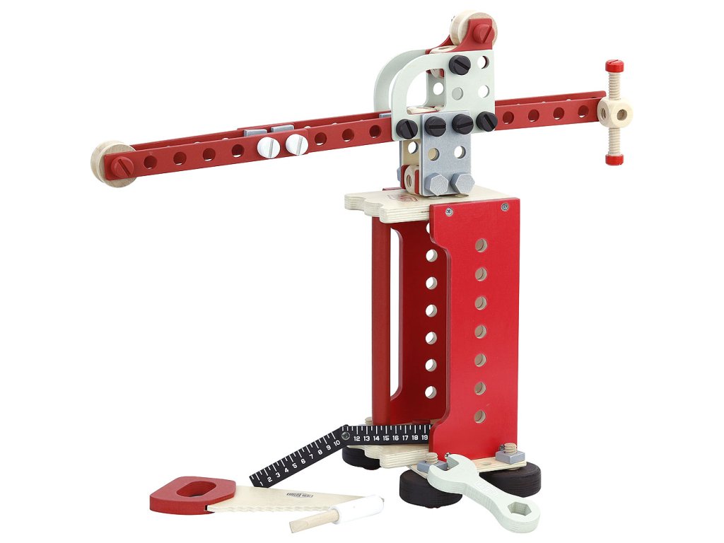 Páni, co to vidím v tomto dobře vybaveném kufru s nářadím? Kladivo, klíč, pila a spousta matic a šroubů.A ještě něco navíc? Tato chytrá sada nástrojů je základem pro mnoho konstrukcí: nákladní auto, jeřáb, robot a mnoho dalších, vše závisí na představivosti dětí. Hlavní vlastnosti: obsahuje 96 ks příslušenstvídesign Ateliéru Vilaclze sestavit 3 modulární konstrukce Ateliér Vilac Postavte, renovujte, udělejte si sami, jedním slovem… Sen! Zcela nová řada pro kutily. Jako byste opravdu cítili vůni dřeva, dotýkali se hoblin z bukového dřeva na podlaze dílny. Ponořte se s námi do tohoto kreativního světa, který dá volnou ruku fantazii malých i velkých dětí. Krásná vintage kolekce s modulárními a doplňkovými hračkami.