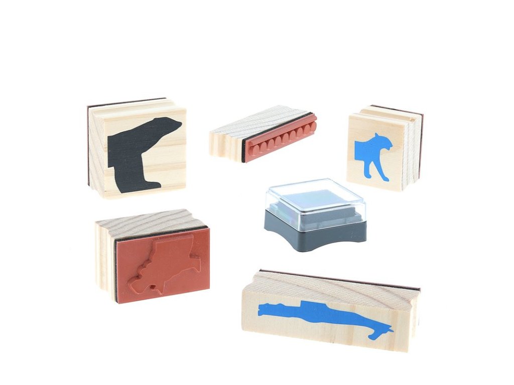 Obsahuje 23 dřevěných razítek a 3 inkoustové polštářky