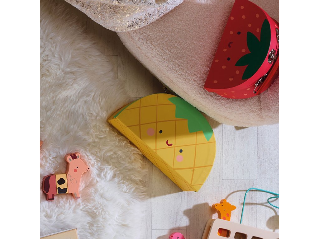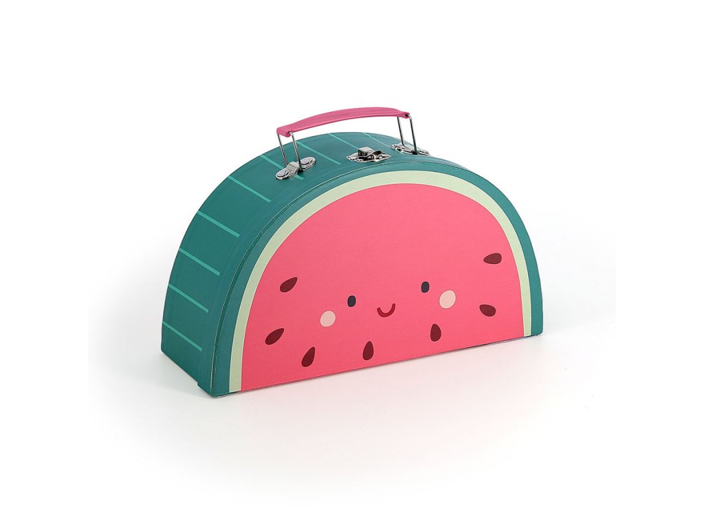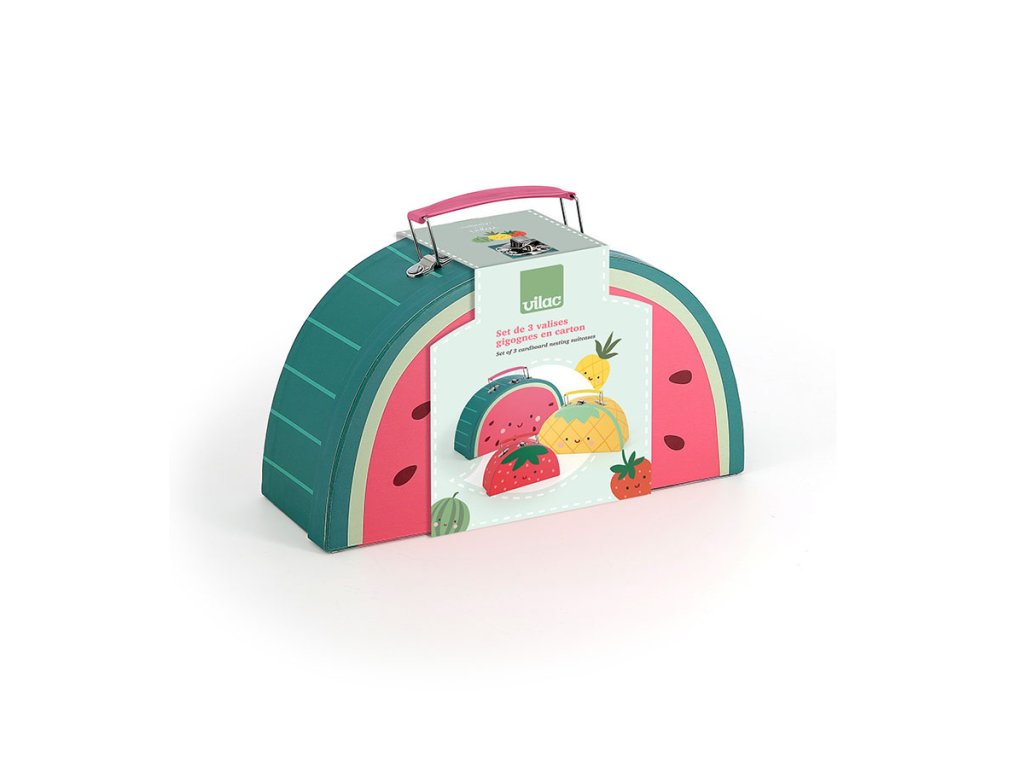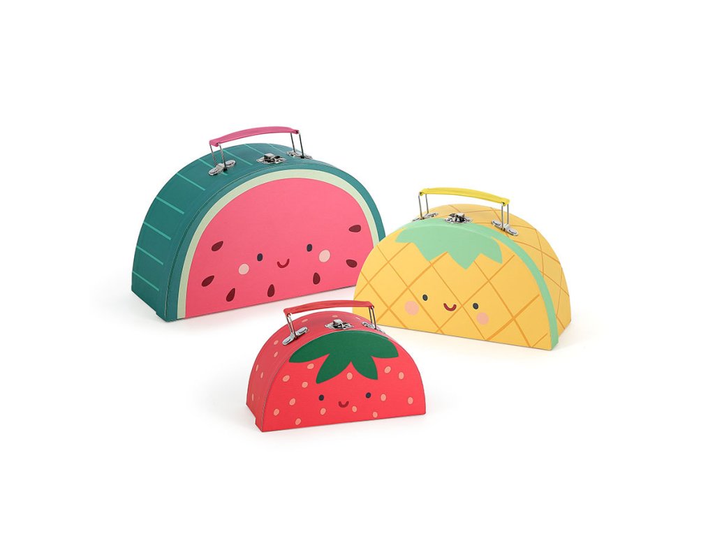 Sada 3 kartonových kufříků, které se dají vložit jeden do druhého, s ilustracemi šťavnatého ovoce - vodního melounu, ananasu a jahod designérky Sarah Betz podněcují představivost a pomáhají rozvíjet jemnou motoriku. Jsou praktické pro ukládání a přepravu hraček a díky nápaditému designu se stanou pěknou dekorací dětského pokoje nebo herny. Stanou se také nezbytným doplňkem při hrách na cestování anebo pro třídění a uspořádání hraček v pokojíčku. Hlavní vlastnosti: 3 kufříky v saděs motivem ovoce zvenčí i uvnitřnápaditý design Sarah Betzna hraní či třídění hračekdoplněk na výlet