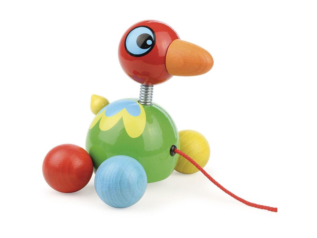 Tento barevný, exotický tahací ptáček je vyroben z masivního lakovaného bukového dřeva. Jeho hlavička je uchopena na pružince a tak se při tahání pohybuje. Vyrobeno ve Francii. Hlavní vlastnosti: podporuje rovnováhu a koordinaci pohybůvyrobeno ve Francii