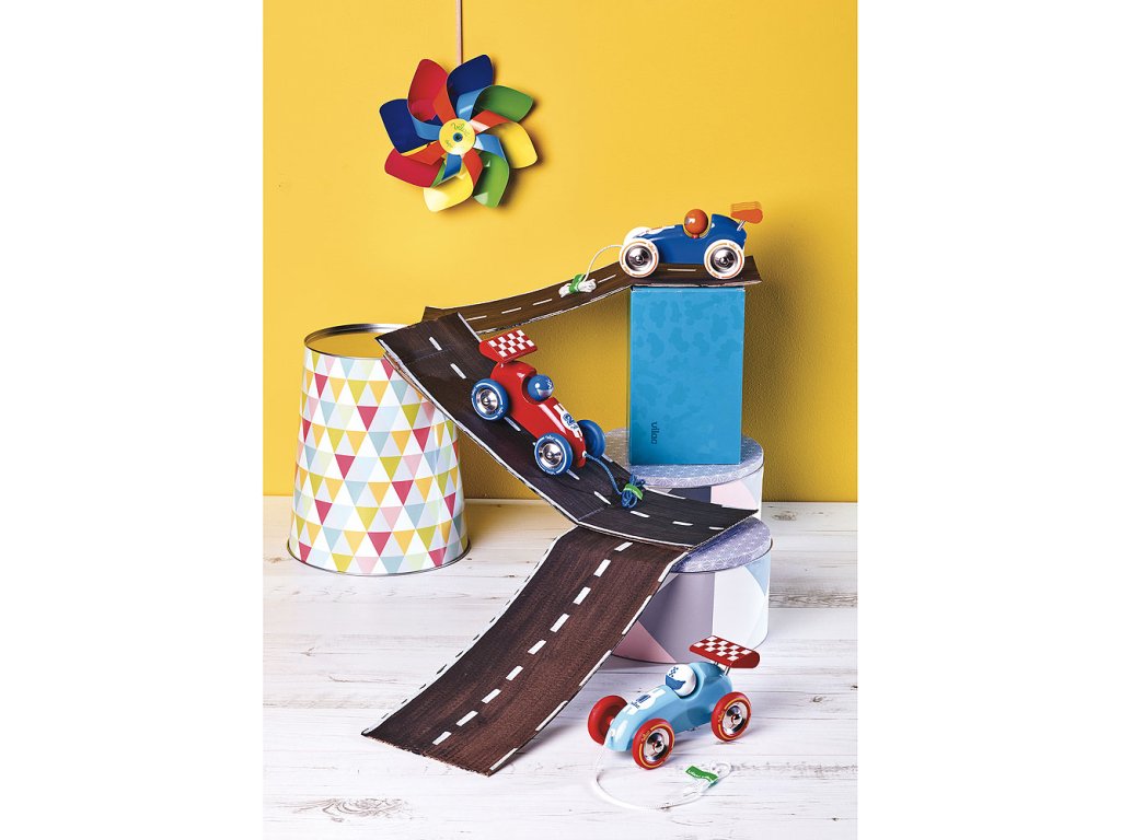 Tyrkysový a červený závoďák z lakovaného dřeva, který děti mohou tahat všude za sebou. Vyrobeno ve Francii. Hlavní vlastnosti: podporuje rovnováhu a koordinaci pohybůvyrobeno ve Francii