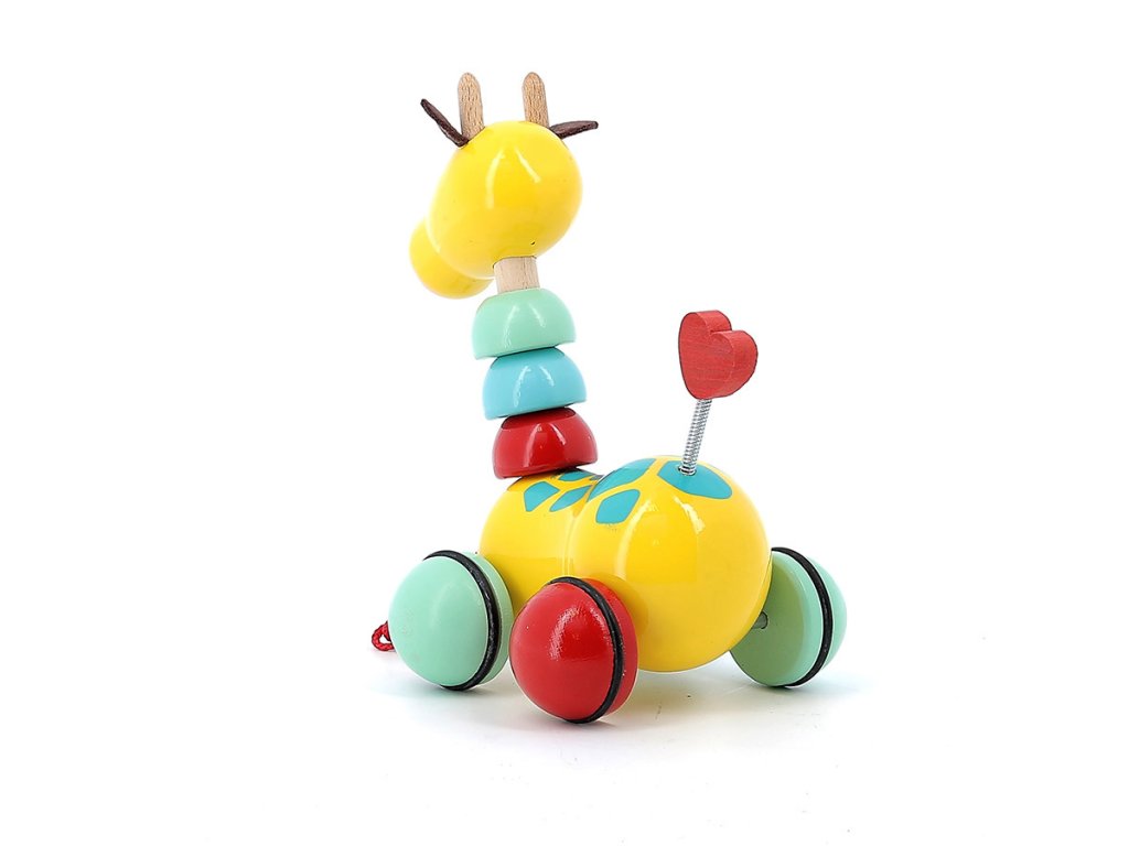 Dřevěná tahací žirafka má srdíčkový ocásek na pružince. Krásná a barevná hračka, s kterou si děti užijí své volné chvíle. Vyrobeno z lakovaného masivního dřeva, ve Francii. Hlavní vlastnosti: podporuje rovnováhu a koordinaci pohybůvyrobeno ve Francii
