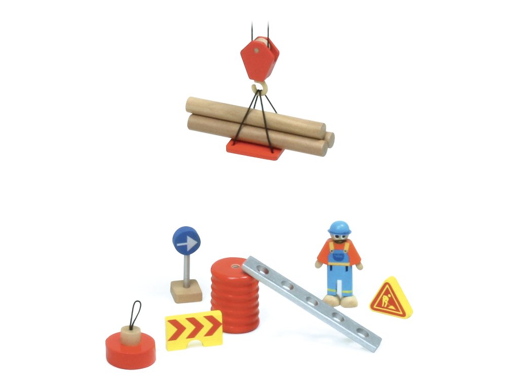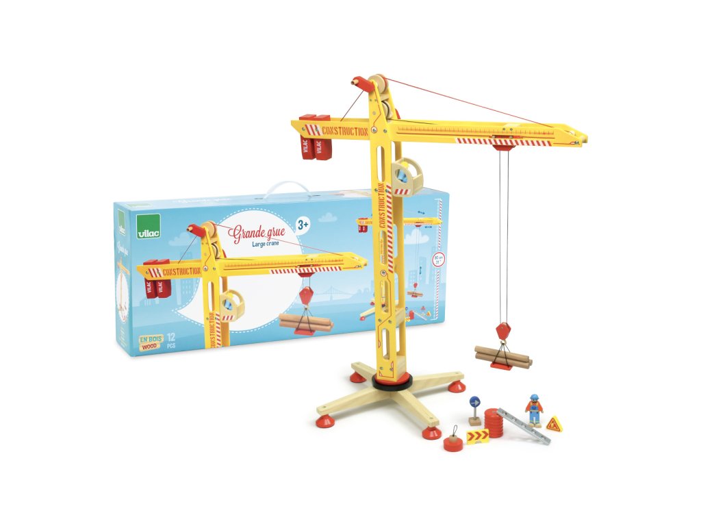 Dejte nový rozměr Vašemu staveništi a vrhněte se na stavbu těch nejvyšších budov se správným jeřábem. Svými impozantními rozměry se hračka stane nepřehlédnutelnou dominantou dětského pokojíčku. Množstvím pečlivě ztvárněných detailů, kabinou, protizávažími a kočkou nadchne každého fanouška stavební techniky. Díky široké podstavě je stabilní a umožňuje bezpečnou hru. Nabízí široké možnosti manipulace, celým jeřábem je možno plně otáčet, břemeno lze posouvat a pohodlně zvedat pomocí dvojice klik. Mezi dodávaným příslušenstvím naleznete pohyblivé figurky jeřábníka a dělníka, plošinu, magnet, různá břemena, ale i značky nezbytné k ohraničení probíhající práce. Vyrobeno z masivního dřeva a odolné překližky, ošetřeno atraktivními nezávadnými barvami. Hlavní vlastnosti: jeřáb, 2 figurky a 10 dílů příslušenstvíjeřábem lze volně otáčet, břemeno lze zvedat i posouvatsnadná manipulace pomocí klikatraktivní, detailní a odolné zpracování