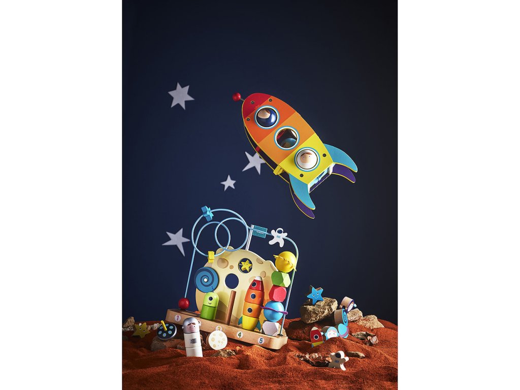 Krásná provlékačka v motivu vesmíru. V kompaktním balení najdete 14 ilustrovaných dřevěných korálků (např. astronaut, měsíc, slunce, raketa), které děti mohou navlékat na textilní šňůrku. Hračka pomáhá s rozvojem jemné motoriky. Vybaveno bezpečnostními sponami. Vhodné od 18 měsíců. Hlavní vlastnosti: 14 navlékacích tvarůvyrobeno ekologicky, šetrně k životnímu prostředí